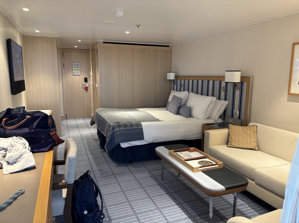 A key feature of Viking cruise ships is that all rooms have a balcony. The ship we were on holds about 900 passengers. In contrast, the larger ships hold closer to 2,500 passengers. It never felt crowded at meals, getting on and off the boat, etc. Our room was on deck 5 (of 9) and was similar in size to most hotel rooms. There was a lot of storage and plenty of space for two people.