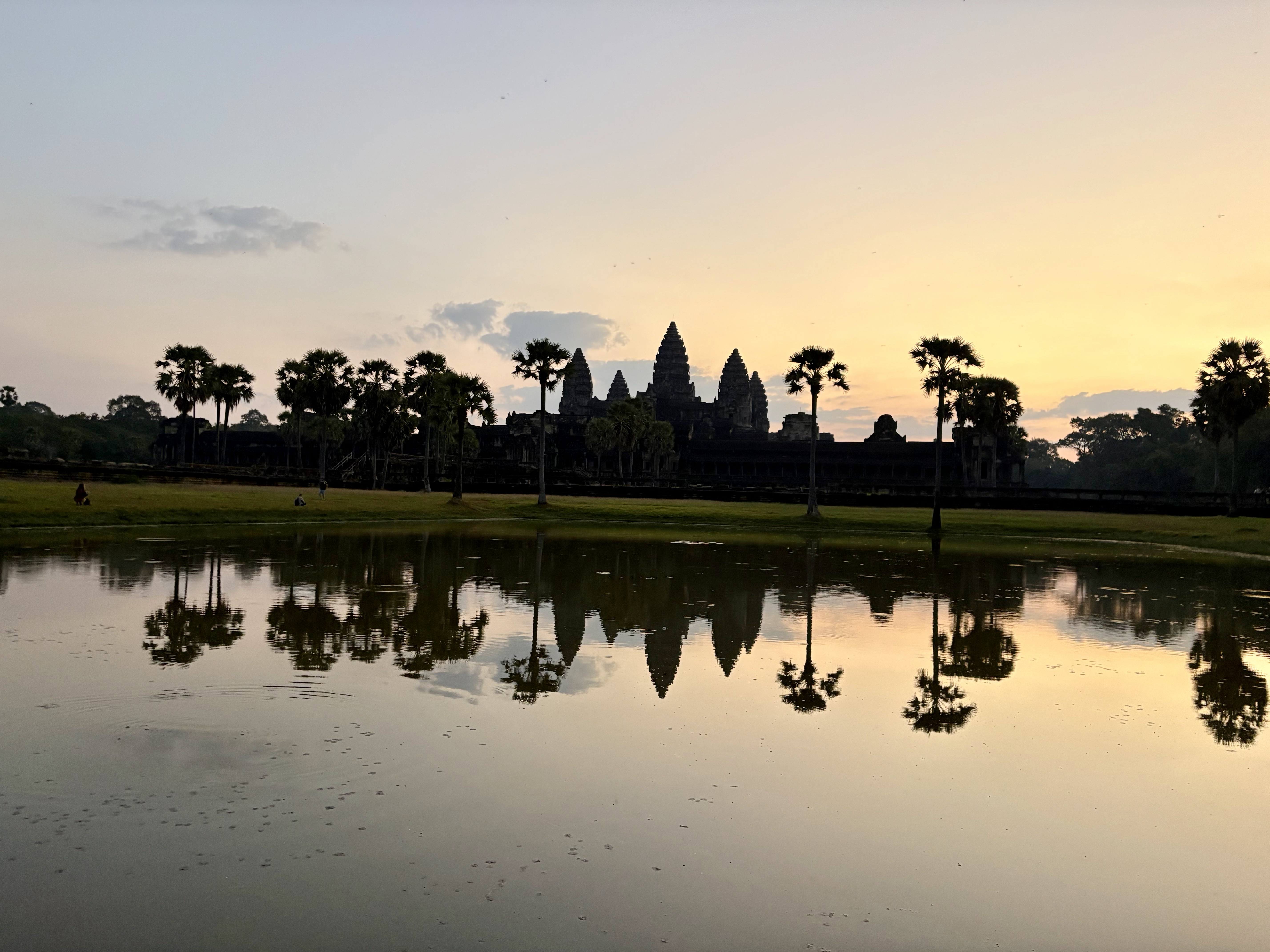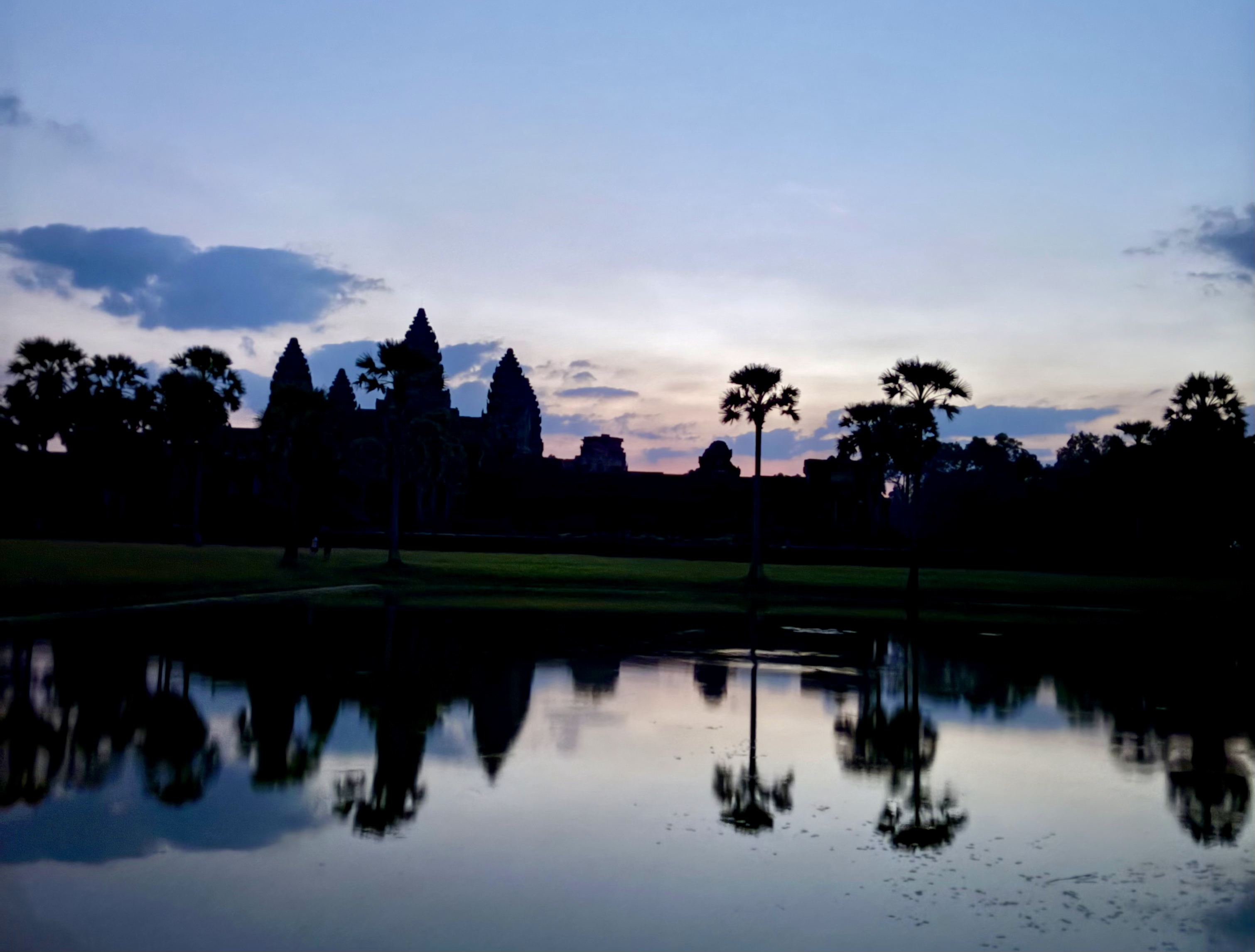 We experienced sunrise and sunset at Angkor Wat in Siem Reap. The silhouette of the ancient temple against the vibrant colors of the sky creates a serene and magical atmosphere. As the sun rises, hues of orange, purple, and gold paint the horizon, illuminating the intricate carvings and towering spires of the temple. In contrast, during sunset, the fading light casts a warm glow over the ruins. I highly recommend taking advantage of your temple pass to visit Angkor Wat more than once.