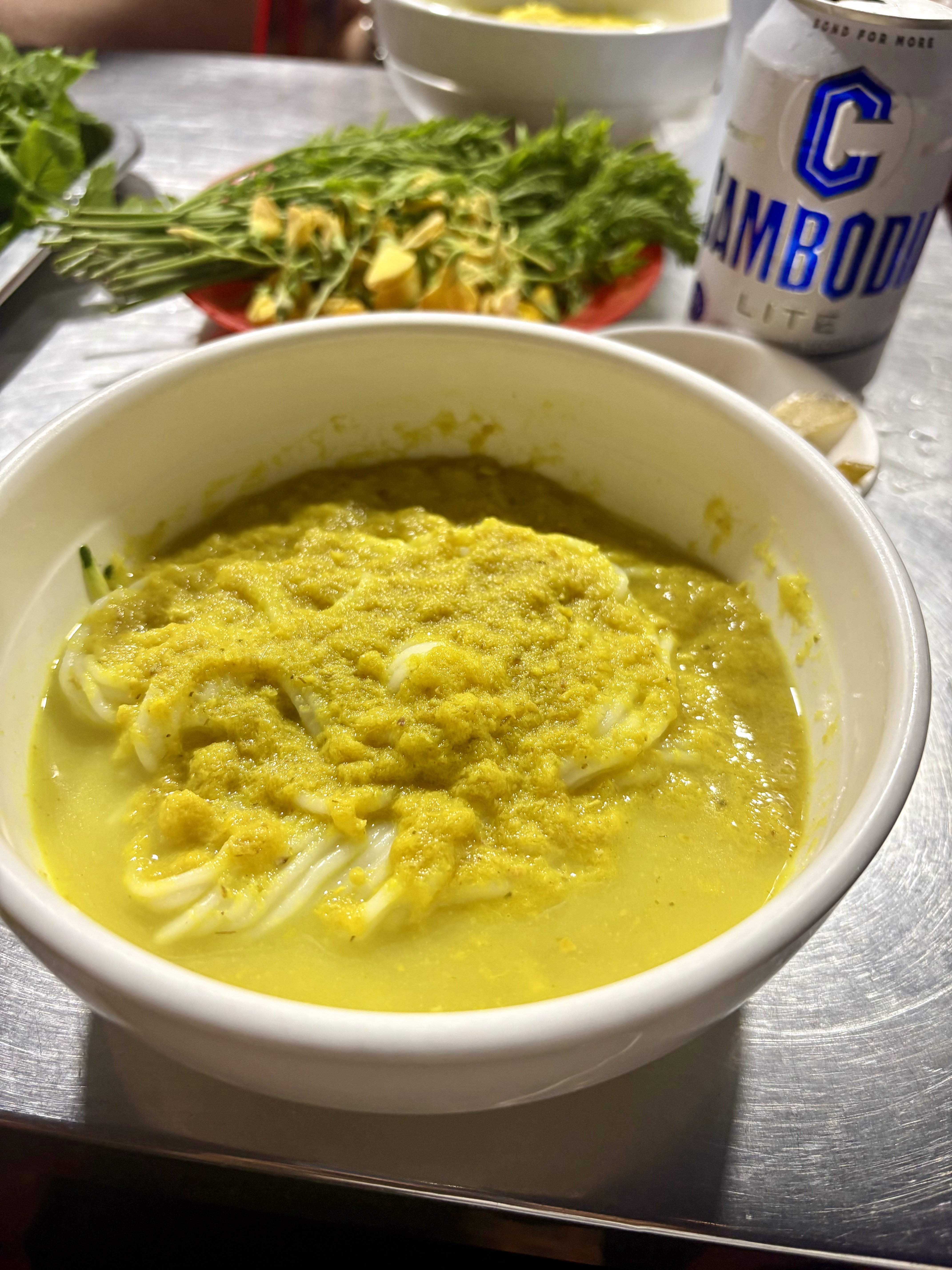 The food tour in Phnom Penh exceeded my expectations as a vegetarian, offering satisfying dishes like noodles, fish curry, and coconut flour pancakes, paired with cold Cambodian beer.