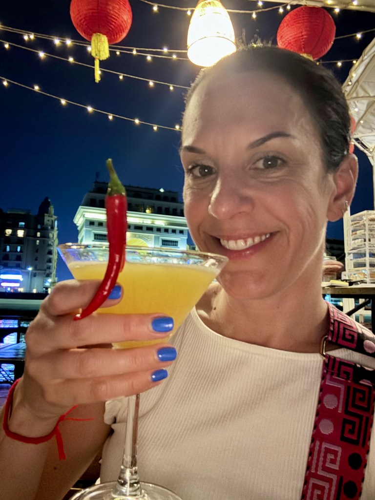 We headed to the hotel’s rooftop to catch the sun setting over the palace and city skyline.