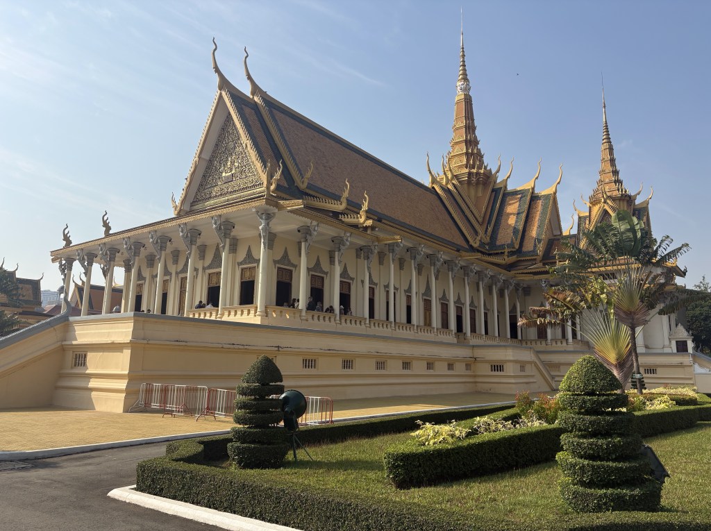 The Royal Palace of Cambodia is a massive complex with public access to the grounds, allowing visitors to explore its stunning architecture and lush gardens, which are rich in history and culture. While the official royal residence was not part of the entrance ticket, guests can still admire the beautiful courtyards and impressive structures surrounding the palace.