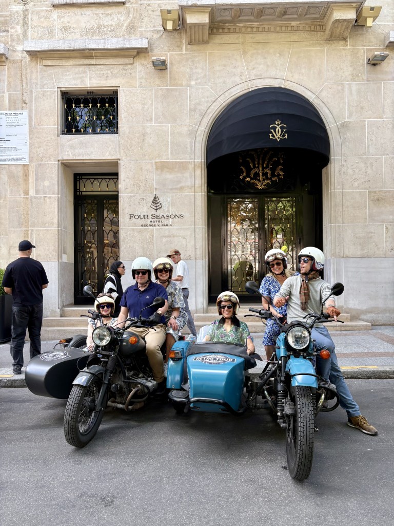 Souvenir & Far’s expert advice helped shape our itinerary and maximize our time in Paris. We loved the recommendation to book a sidecar tour the first afternoon. We met our two drivers who are called Gentleman Siders outside the Four Seasons hotel. We discussed the sights we wanted to see and then took off for a 90-minute adventure around the city. We zipped by the Arc de Triomphe. We stopped in front of the well-known Moulin Rouge for a photo op. Then we made our way to the summit of Montmartre to take in the view.