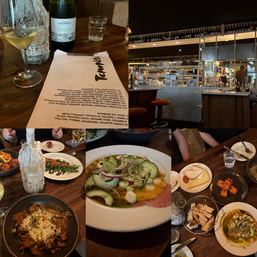We received enough restaurant recommendations to cover about two months of dinners out. The two we booked reservations at did not disappoint! The first night we went to Tempete. It is a natural wine bar with an eclectic menu. The menu ranges from French to Asian dishes.