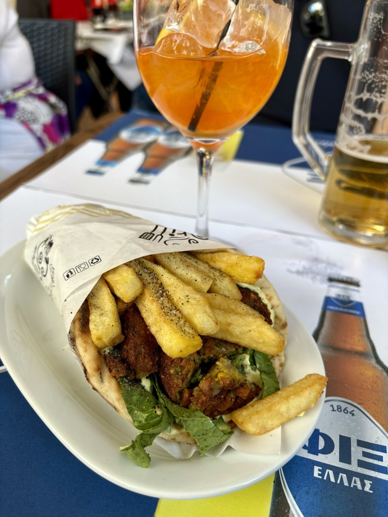 We had lunch at Iliada. I was in the mood for falafel and found a cafe with almost 1,800 reviews and a 4.9 rating. Not to mention it was just around the corner from the hotel! We snagged a corner table outside. The meal ended with complimentary baklava for dessert.