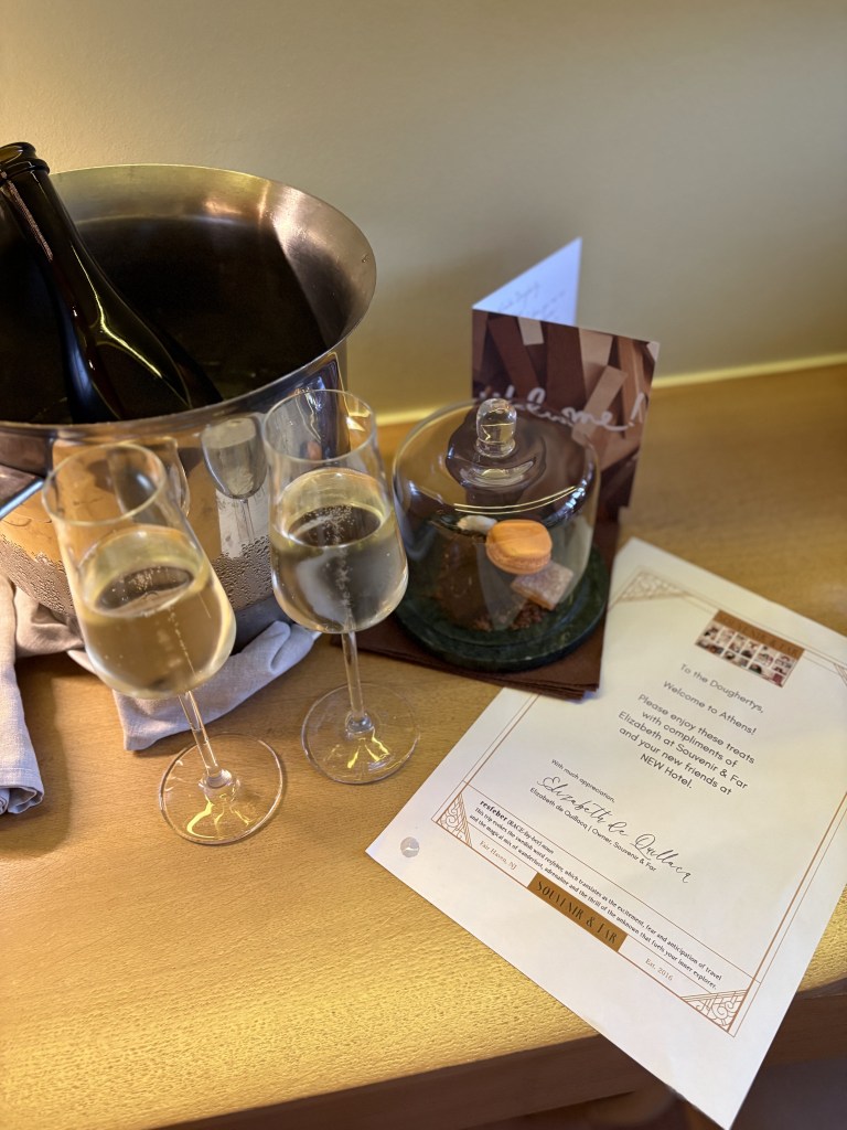 With only one night in Athens, the hotel location and amenities was an important decision. We booked the NEW hotel through my favorite travel advisor, Elizabeth at Souvenir & Far. Cheers to Elizabeth and her team for their expert advice before booking our entire trip.