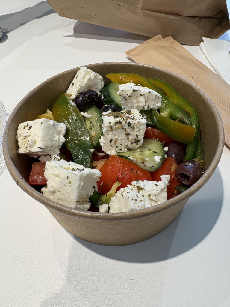 We had one final meal at the airport. The pre-made Greek salad was a noteworthy way to end our short time in Athens. I wish all airport food looked this fresh and appealing!