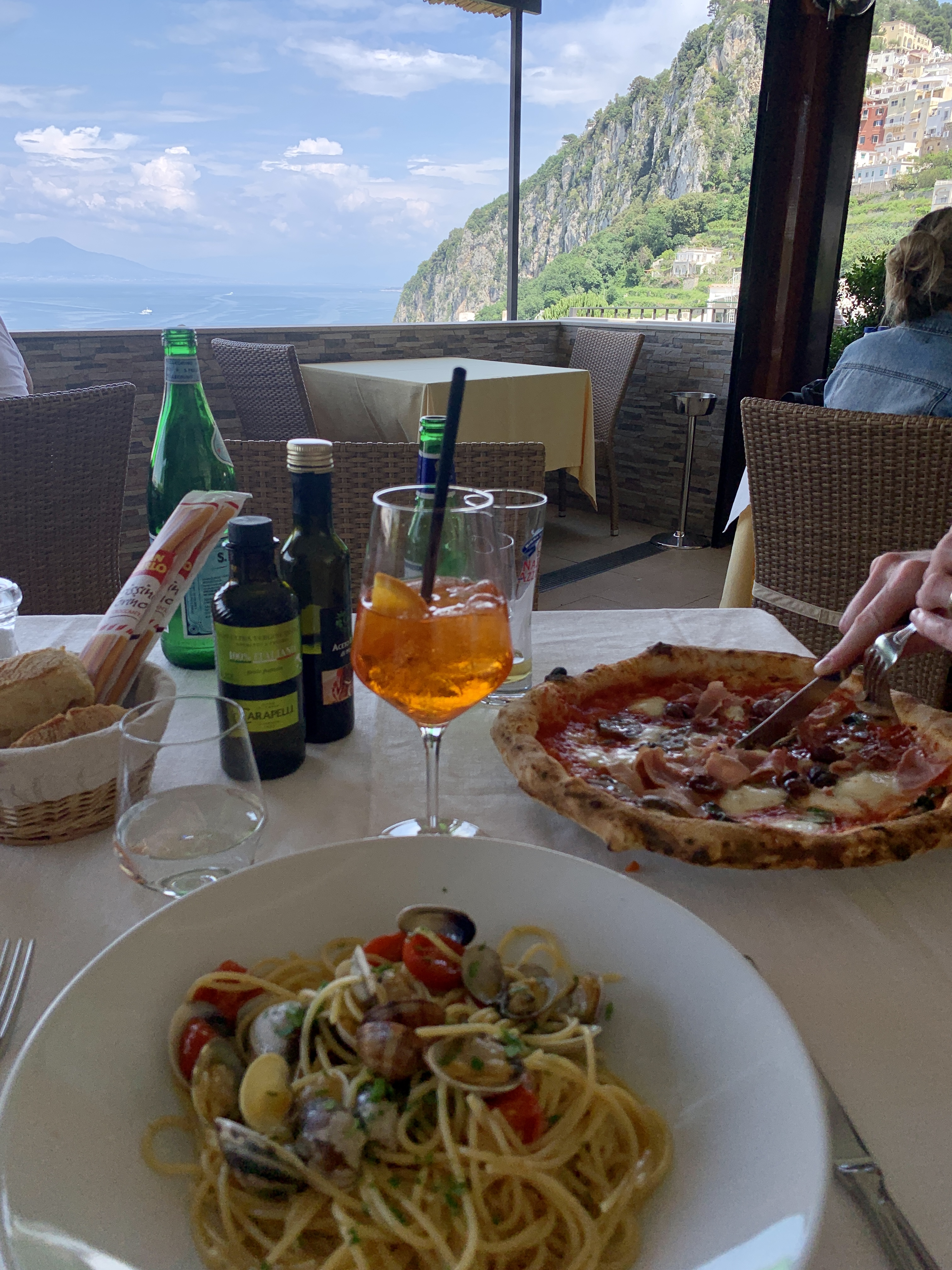 We started the day exploring San Giacomo monastery that was next to the Giardini di Augusto. RJ accidentally stepping in wet cement as we entered the monastery was my takeaway from the visit and I would only go here if you have extra time to kill. From there we walked to Capri Rooftop and enjoyed the views over a couple of spritzes while we planned our next move.