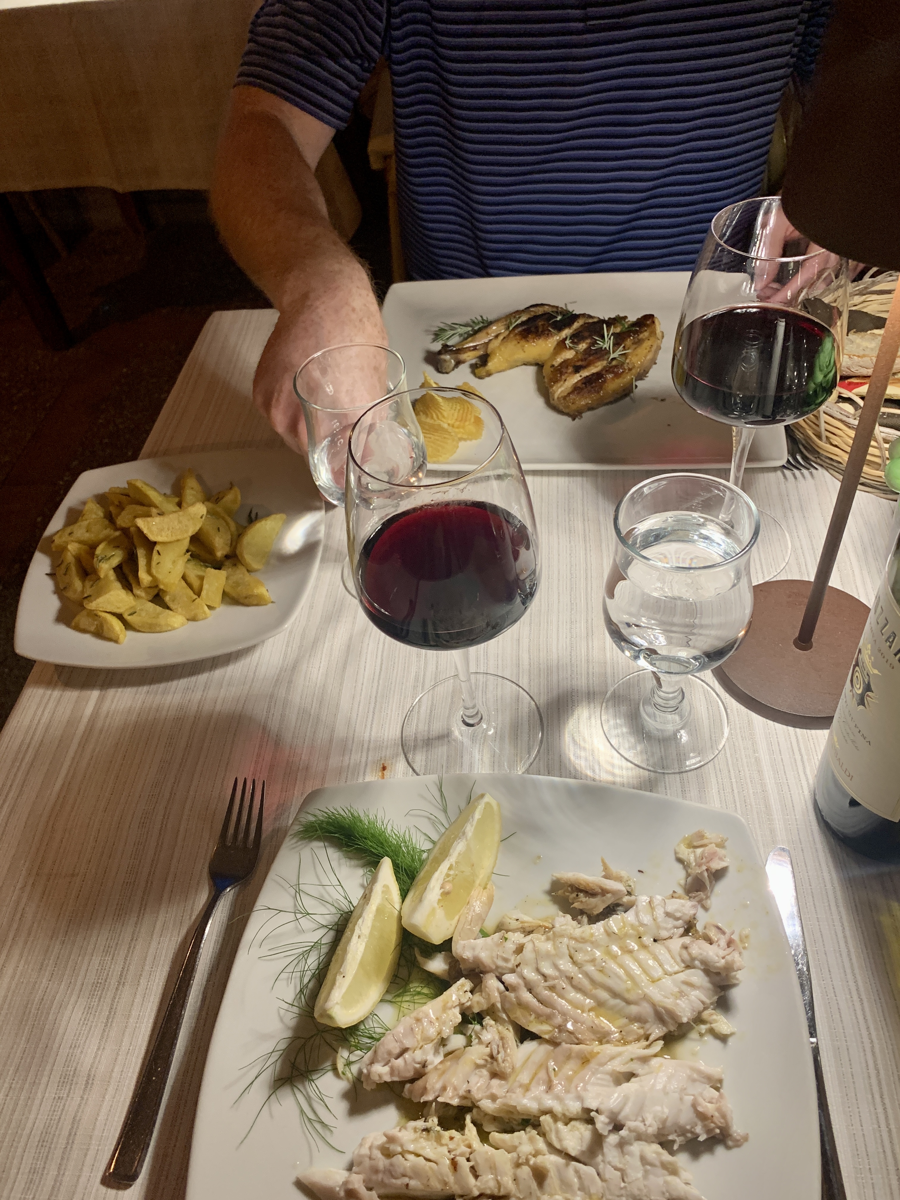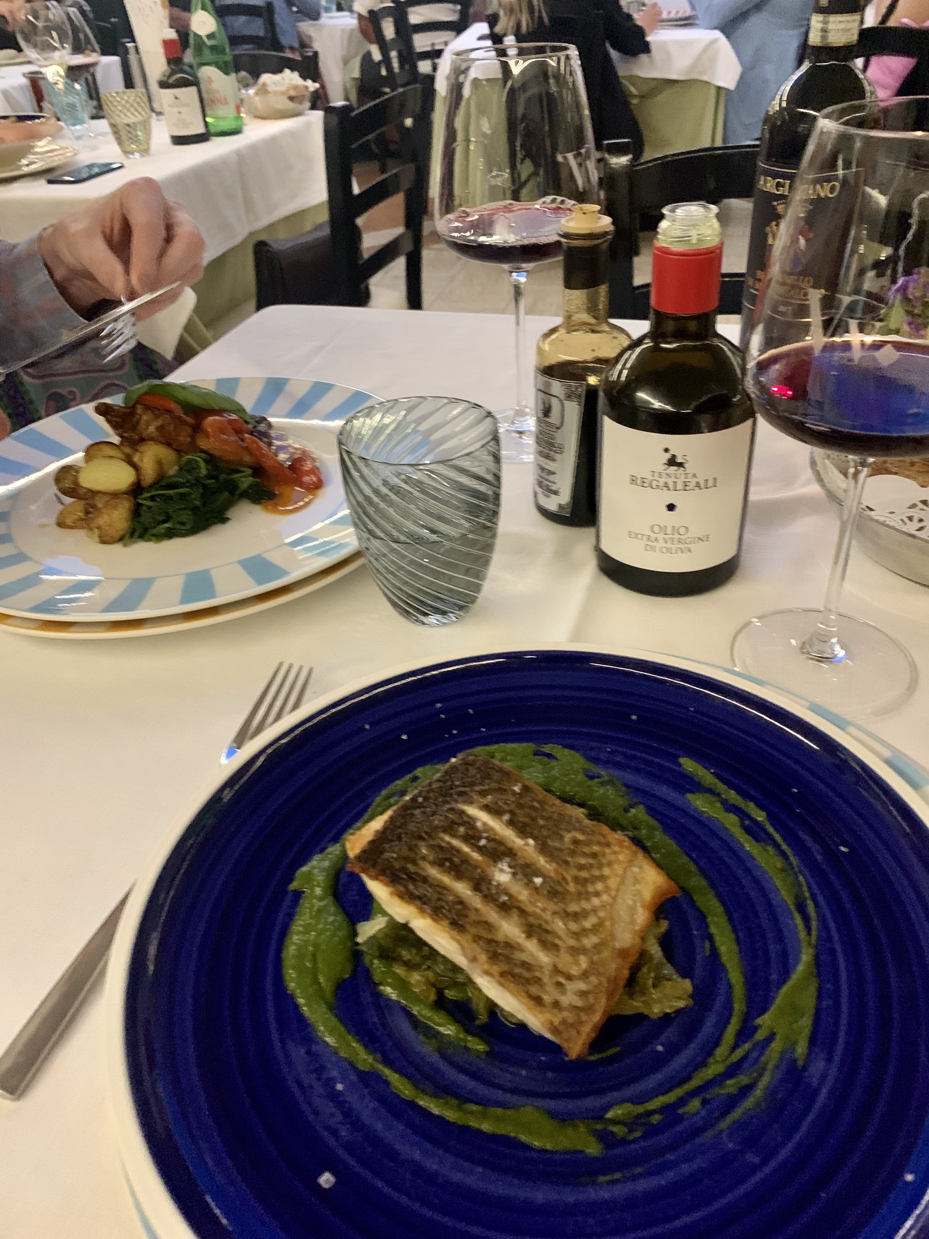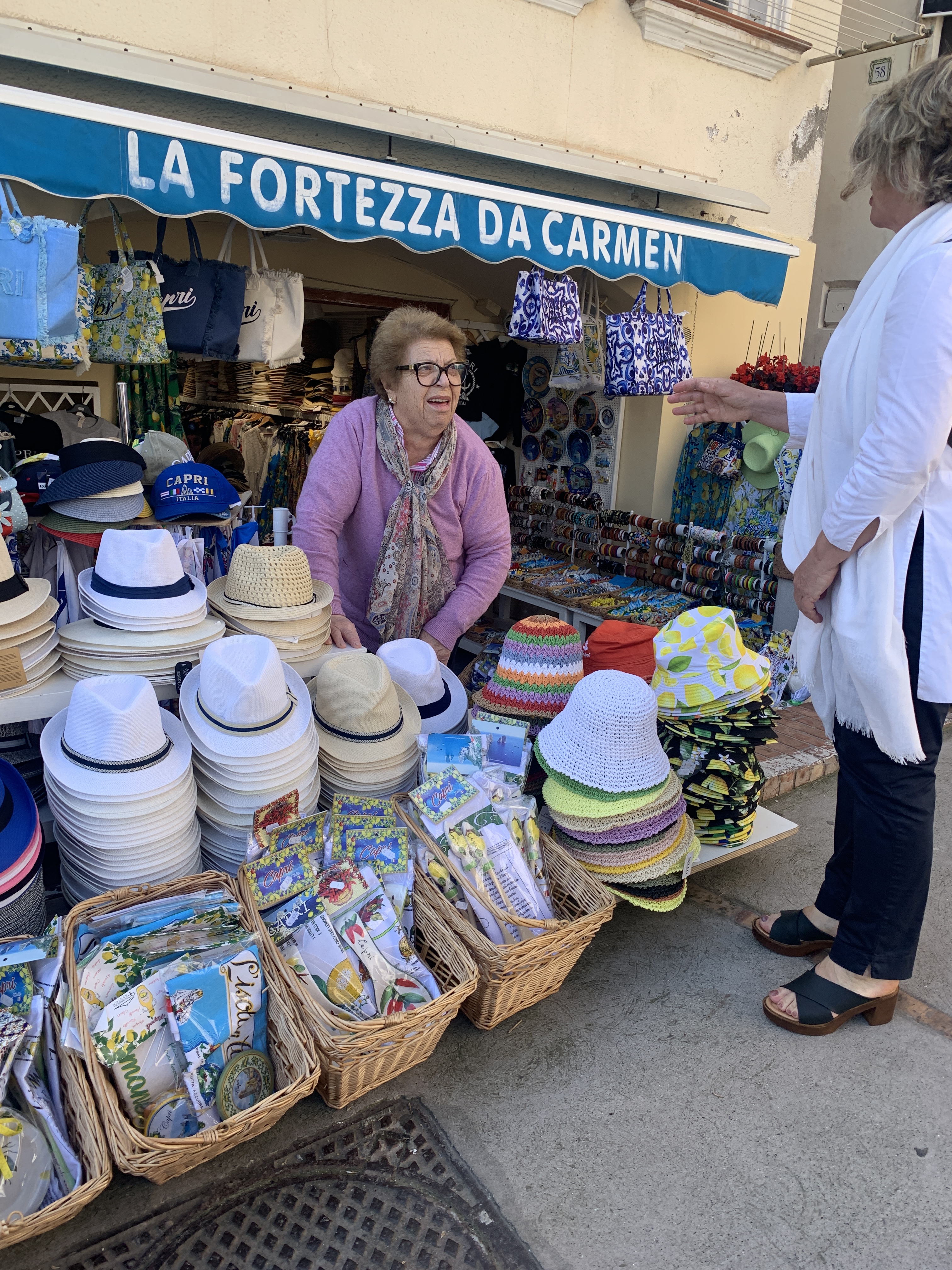 We ate dinner at Villa Margherita in Capri. The food was good and like nothing we order at Italian restaurants at home – cod cakes, lobster and burrata pasta, sesame crusted tuna, etc.. However, the custom Capri chargers (placemats) on the table will be what I remember. A quick search of the artist, Laetitia Cerio, led me to Eco Capri two days later. We had a chance to talk to her grandson and learn about their family and his focus on bringing both of his grandparents’ art into prints that they sell in their boutique. We now have a couple of the chargers below on our dining room table to remind us of Capri. They do not have an online store so you will just have to go and see it for yourself, and take me with you!