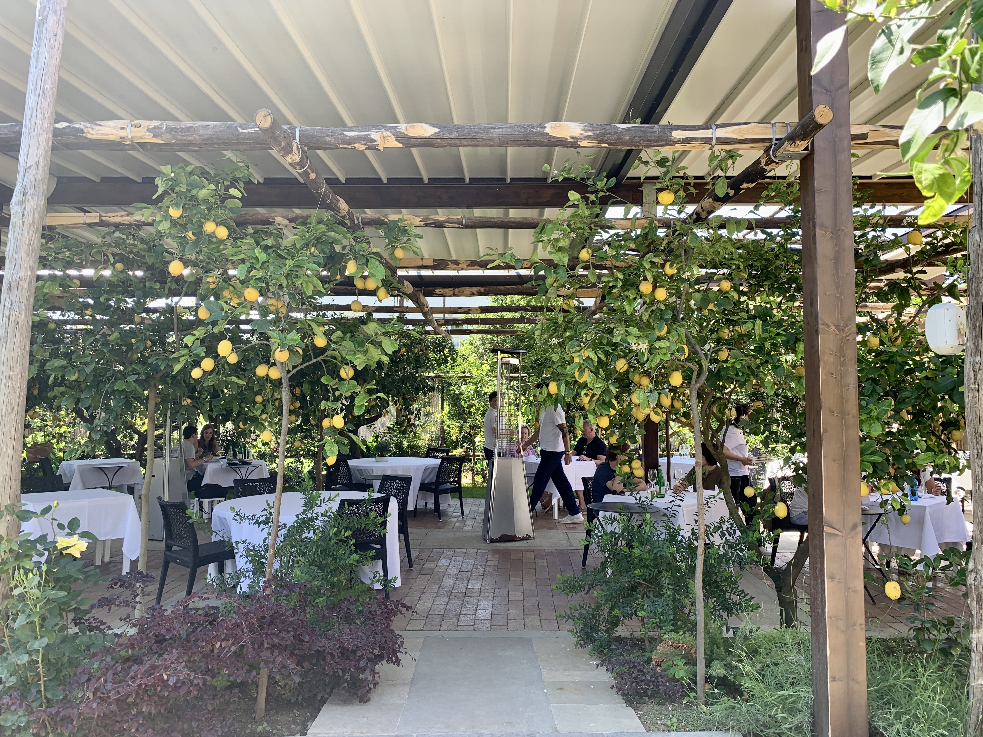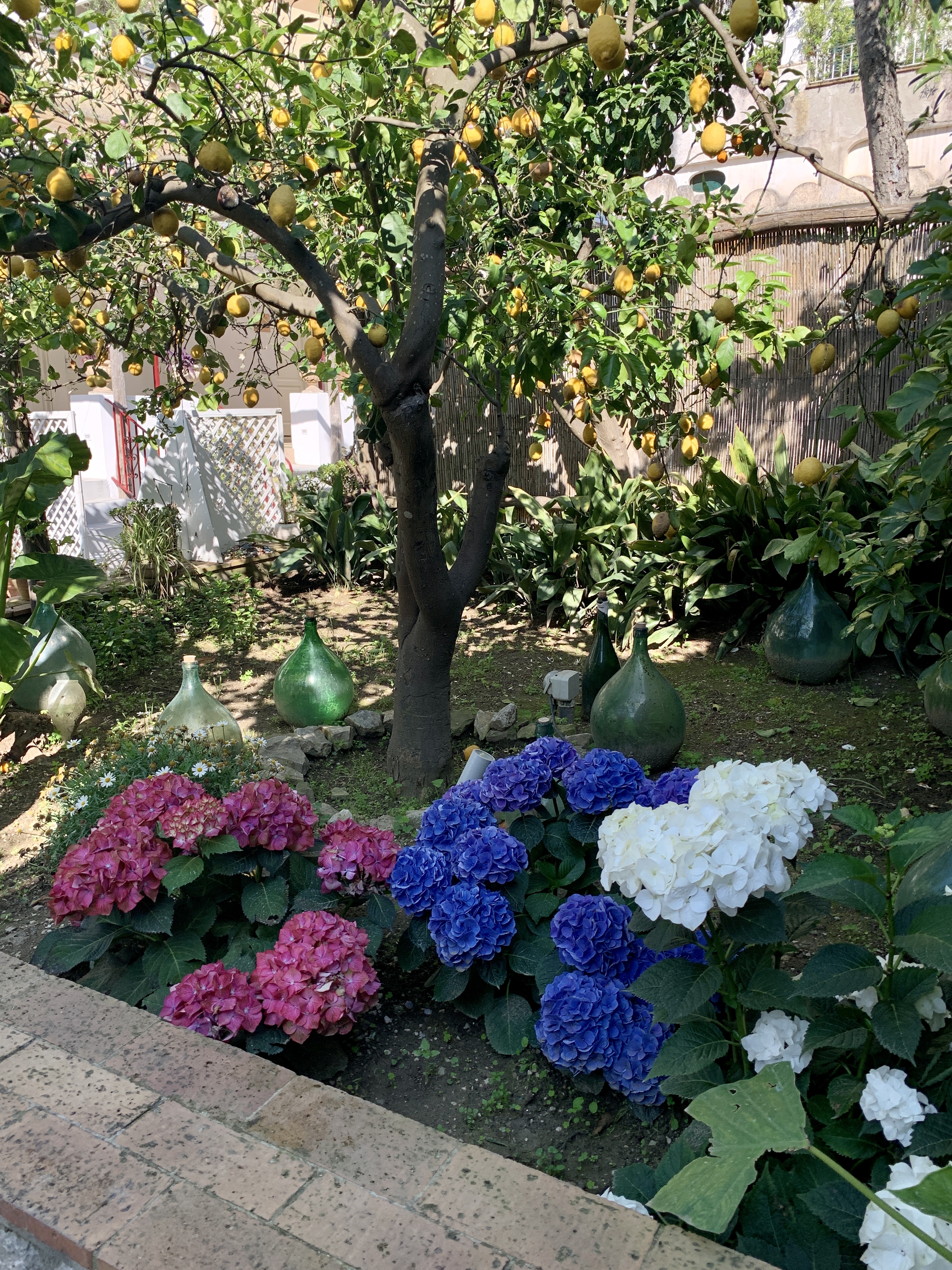 After the boat ride we took a taxi to Anacapri for lunch at La Zagara. Lunch in a lemon grove was the perfect refuge from the tourist packed streets. Note: all the taxis in Capri are super cute mid-sized convertibles. I didn’t get a picture of one with an umbrella like cover but these are unique to Capri.
