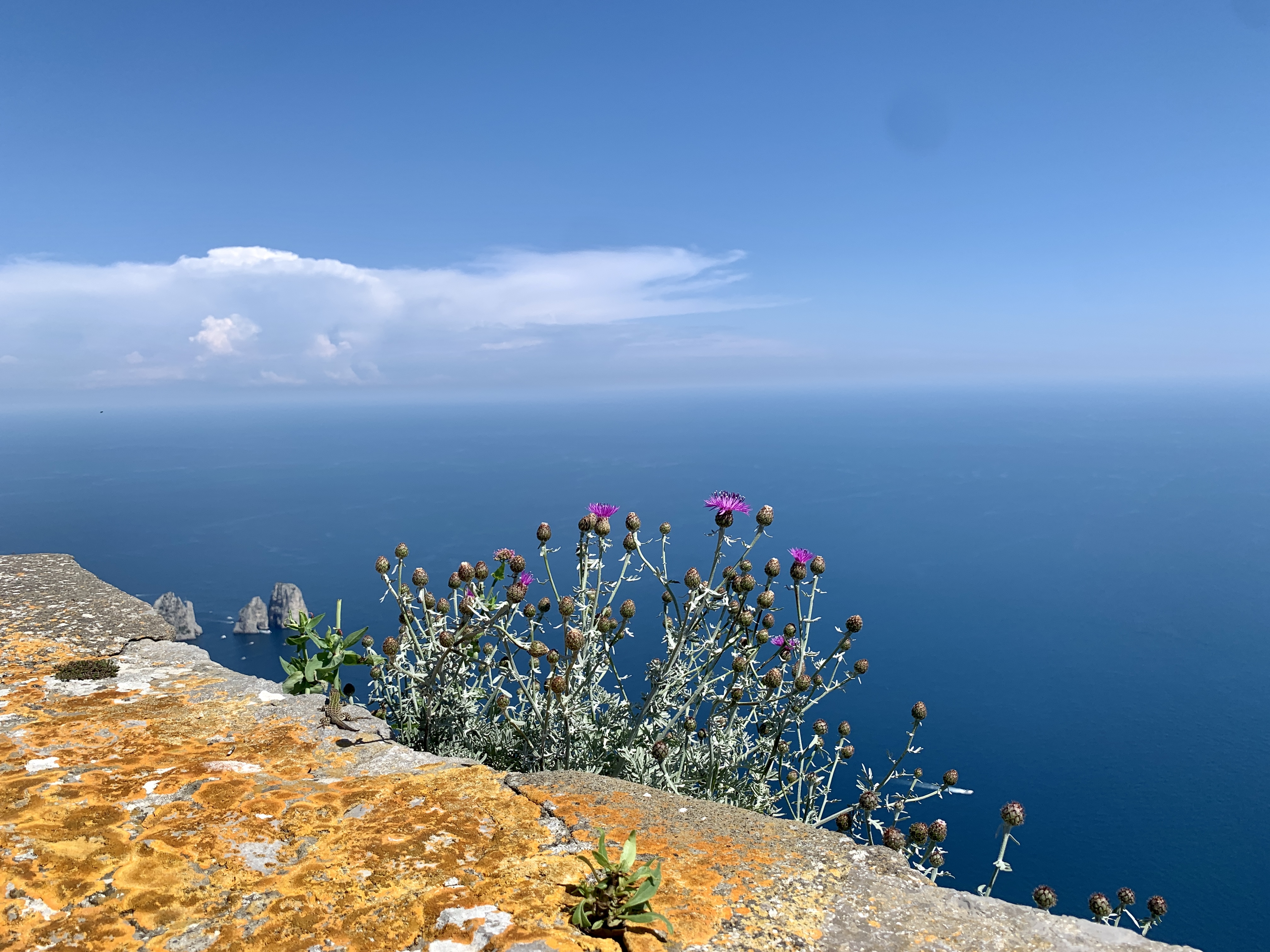 We had a loose plan that consisted of a “loop” that starts in town, heads towards the Arco Naturale, I Faraglioni, Giardini di Augusto, and then circles back to town. They said it would take 90 minutes and to do it clock wise to go down many steep steps opposed to walking up them. Definitely do this. The walk to the Arco Naturale was a beautiful “window” into the Amalfi Coast across the water. I was starting to wish I was wearing a different outfit but onwards we went!