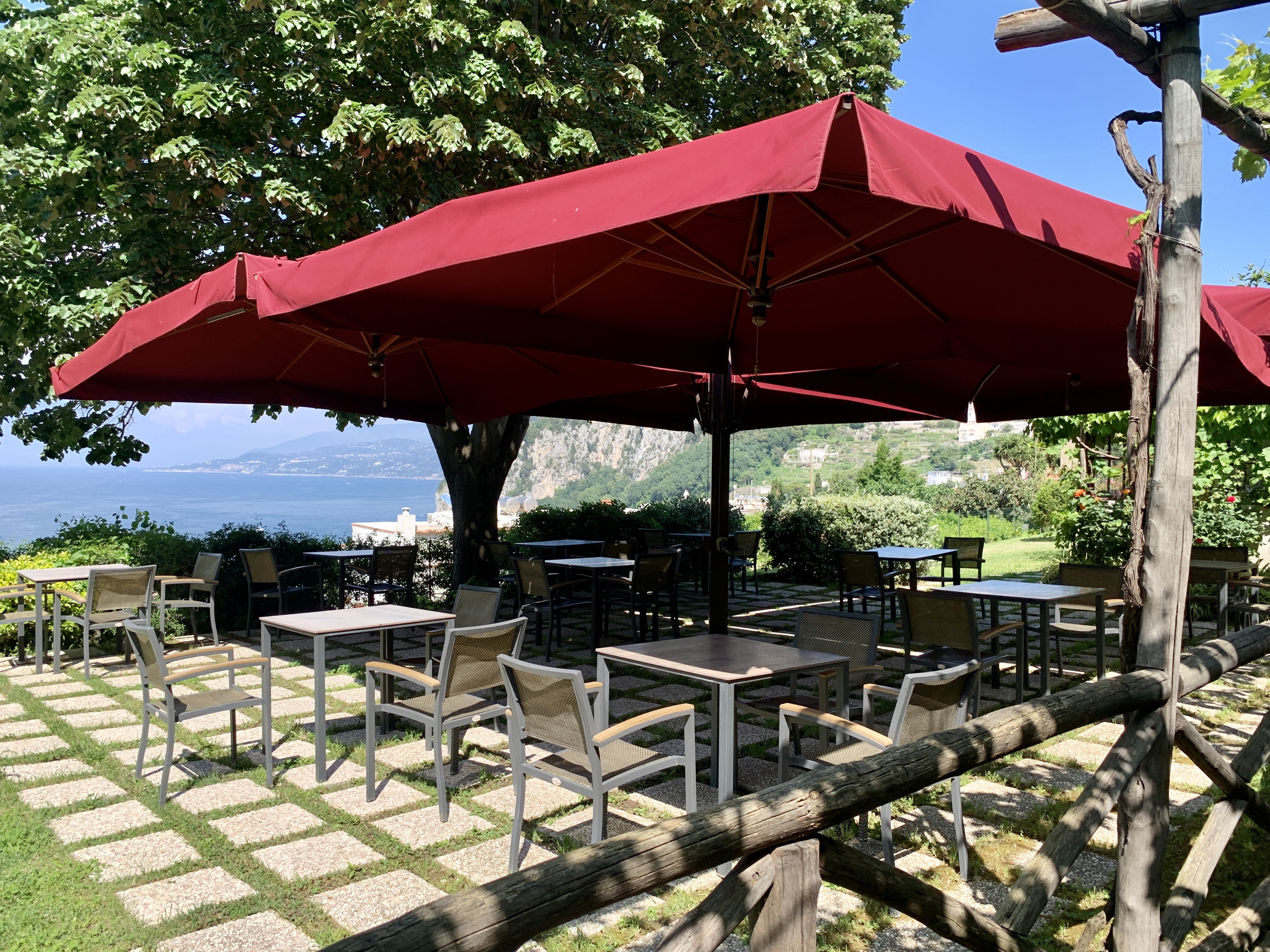 The Capri Wine Hotel was our home base in Capri. It felt like staying at a family member’s vacation house thanks to the incredible hospitality of the owners, Elena and Raffaele. They turned an old family winery into a modern hotel with beautiful gardens overlooking the Gulf of Naples. I can’t say enough about this place and how it truly made our stay one to remember. Located in between the Marina Grande and Capri it was easy to walk to either or catch a ride to Anacapri. Elena and Raffaele secured dinner reservations and they booked us a three hour boat tour before we arrived to help plan how we would spend our time in Capri. They also provided many more recommendations once we were in Capri. I could go on and on but here are some shots from our deck, around the property, and where we ate breakfast.