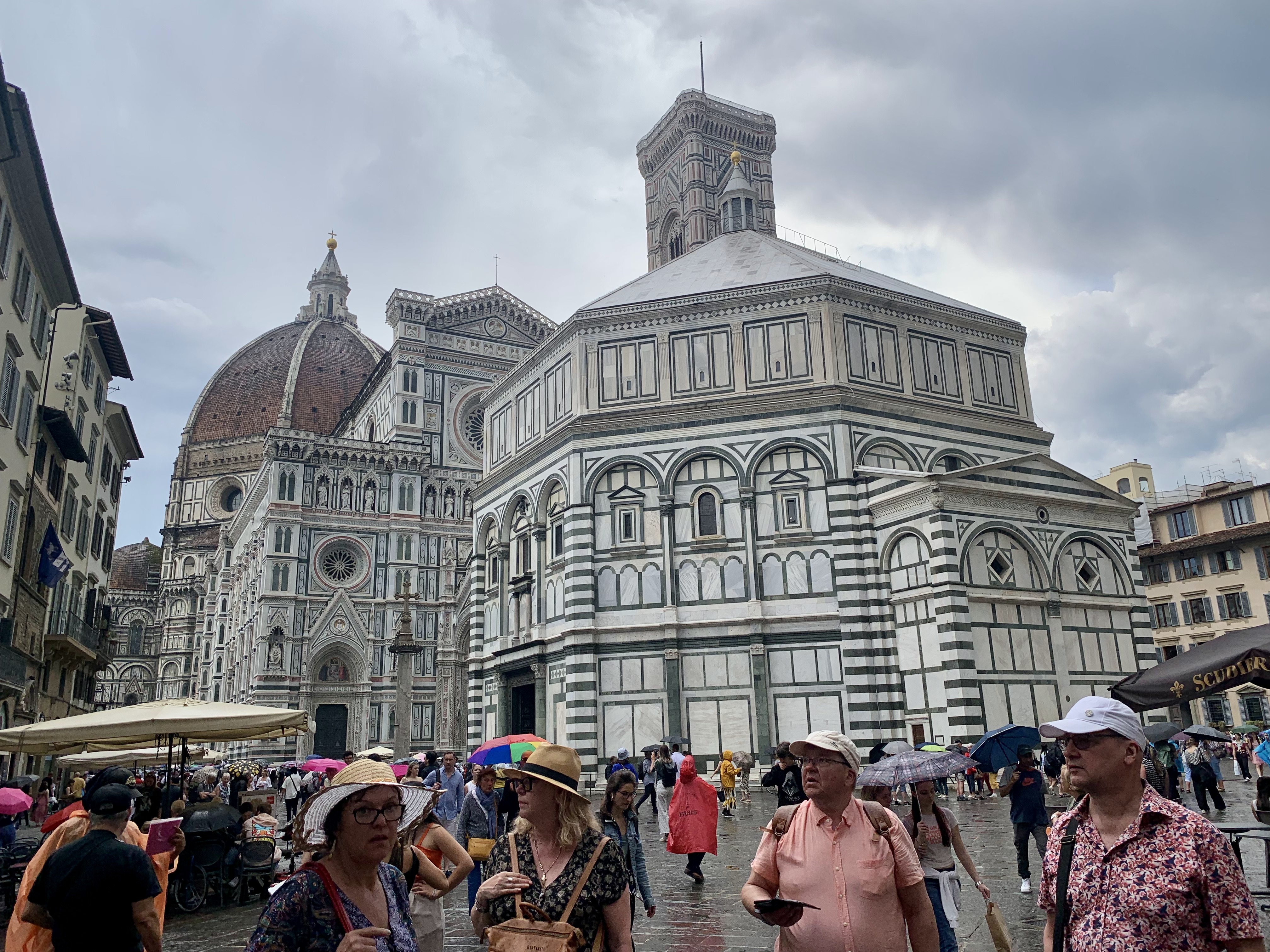 We arrived at the train station in Florence around 2pm, quickly checked in to the hotel, and then set out for lunch. We mostly ate pizza and pasta in Rome and Capri and were ready for the paninis in Florence that everyone talks about. We were hungry and it was raining so we breezed through the Piazza del Duomo since we would have plenty of chances to return. The marble, stones, and tiles are one of my favorite things about Florence!