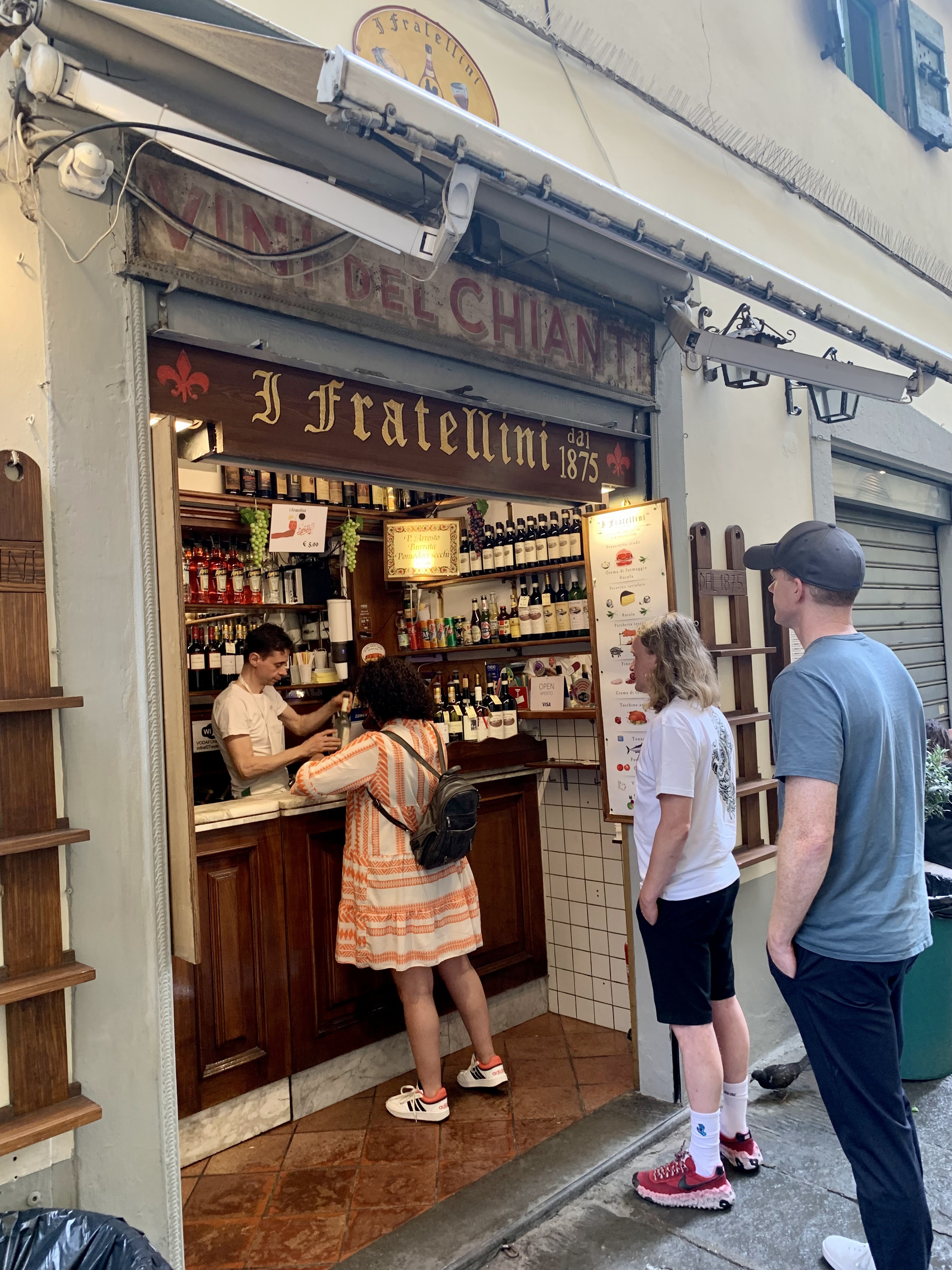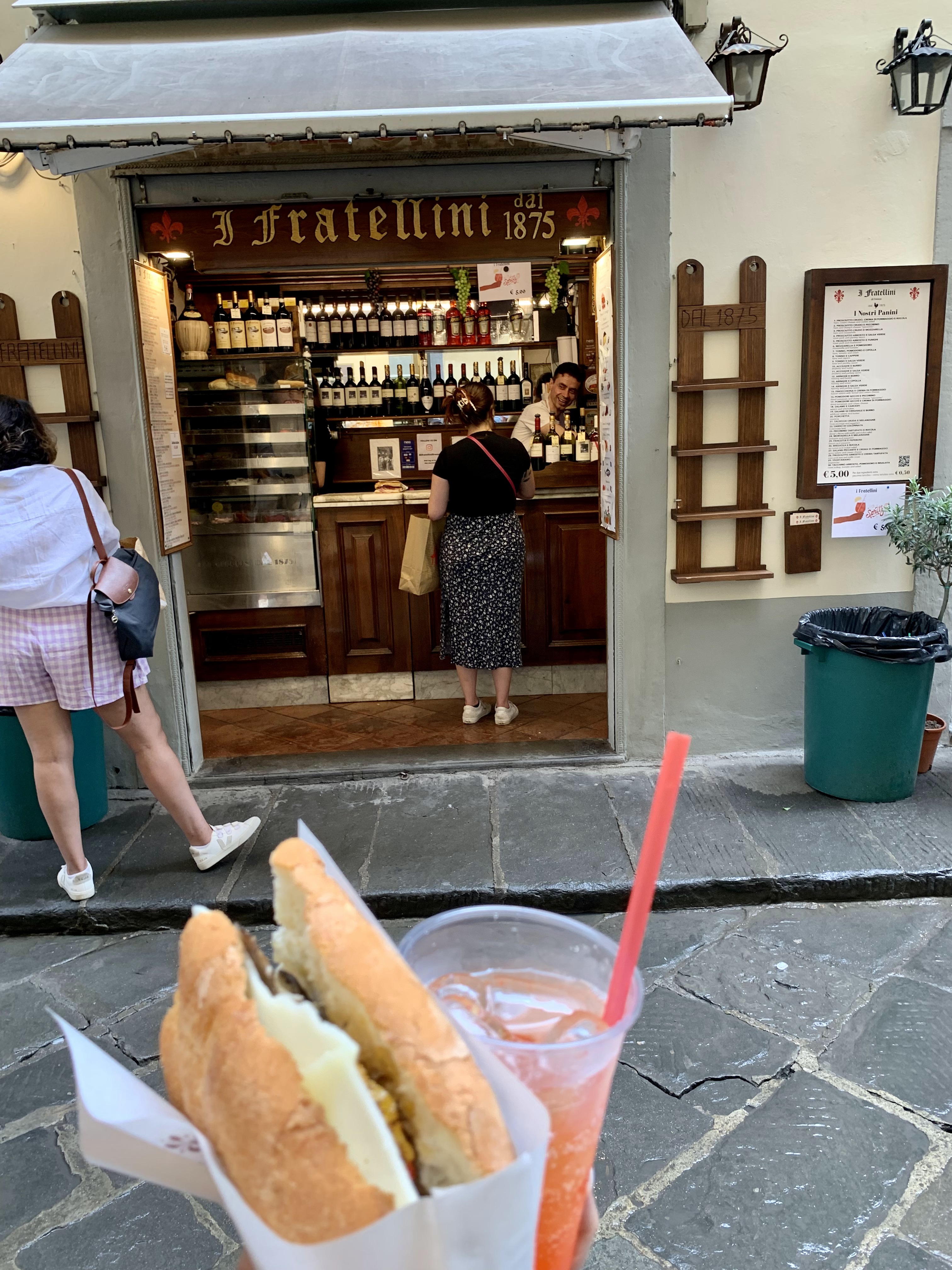 Our first panini experience in Florence was at I Fratellini. We were lucky to get a sandwich since we arrived after 3pm and they ran out of the traditional bread. No complaints here that we had to get the large. The spritz to go hit the spot, too. They have been doing this since 1875 and know how to make a panini so come here when in Florence – we recommend the pork and the roasted vegetable!