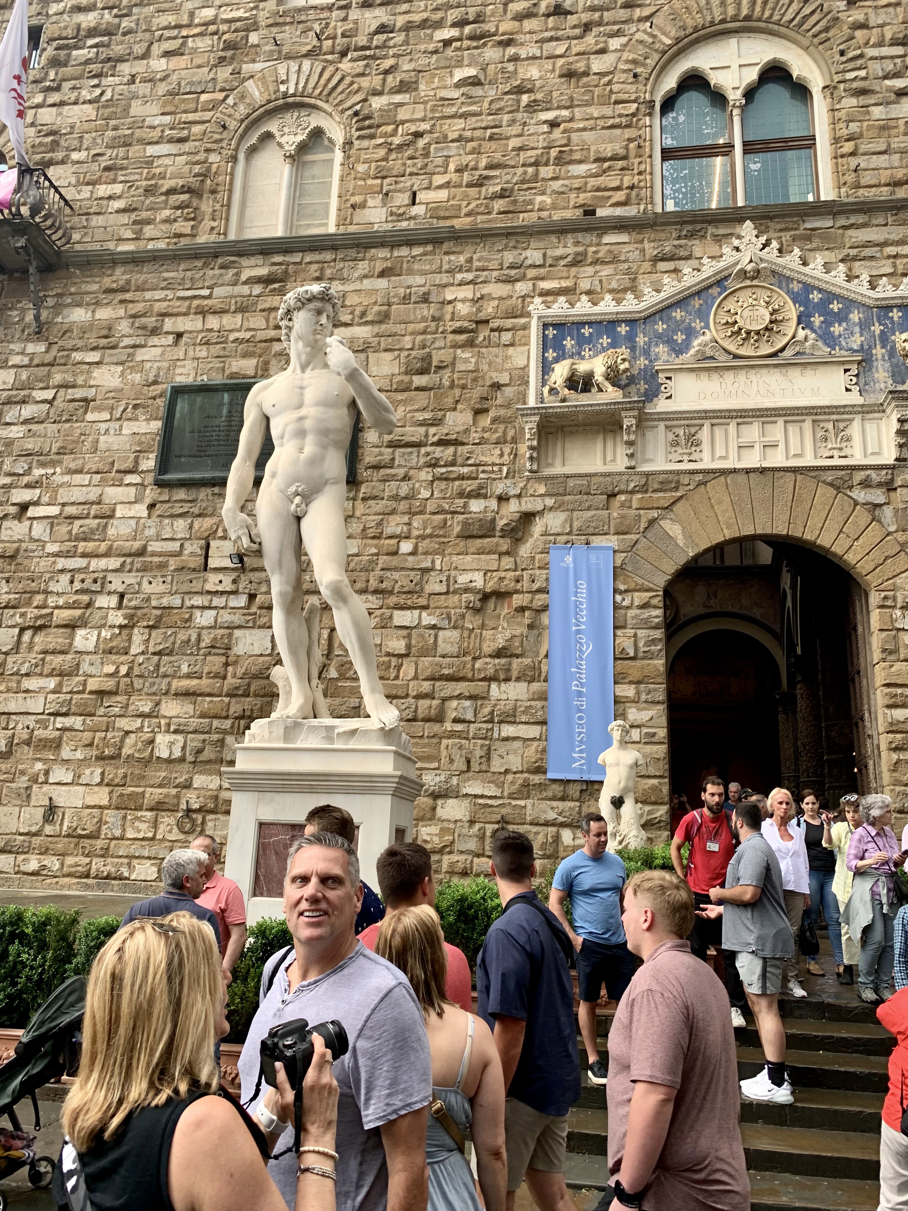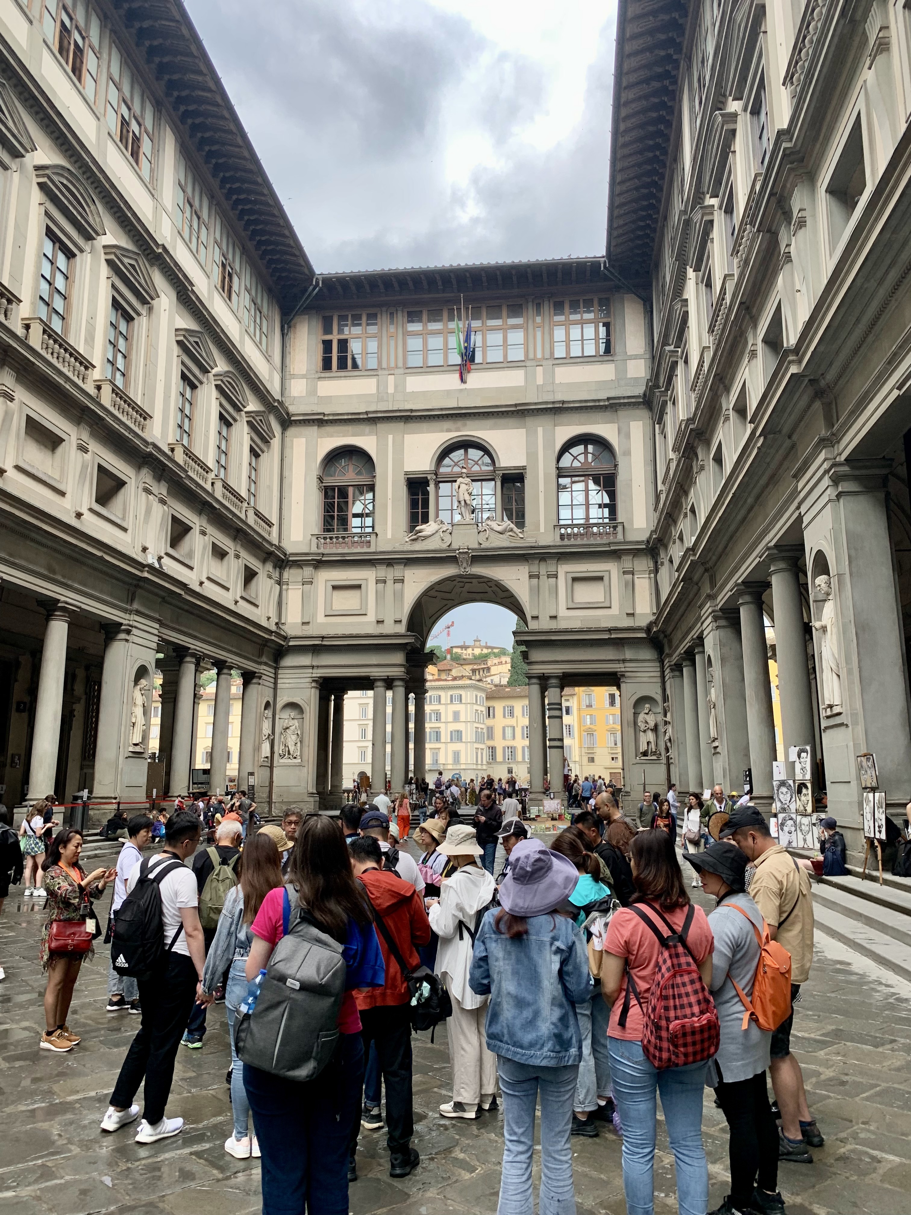 After speed eating paninis on the street, we headed past the replica David statue and continued on towards the Uffizi gallery.