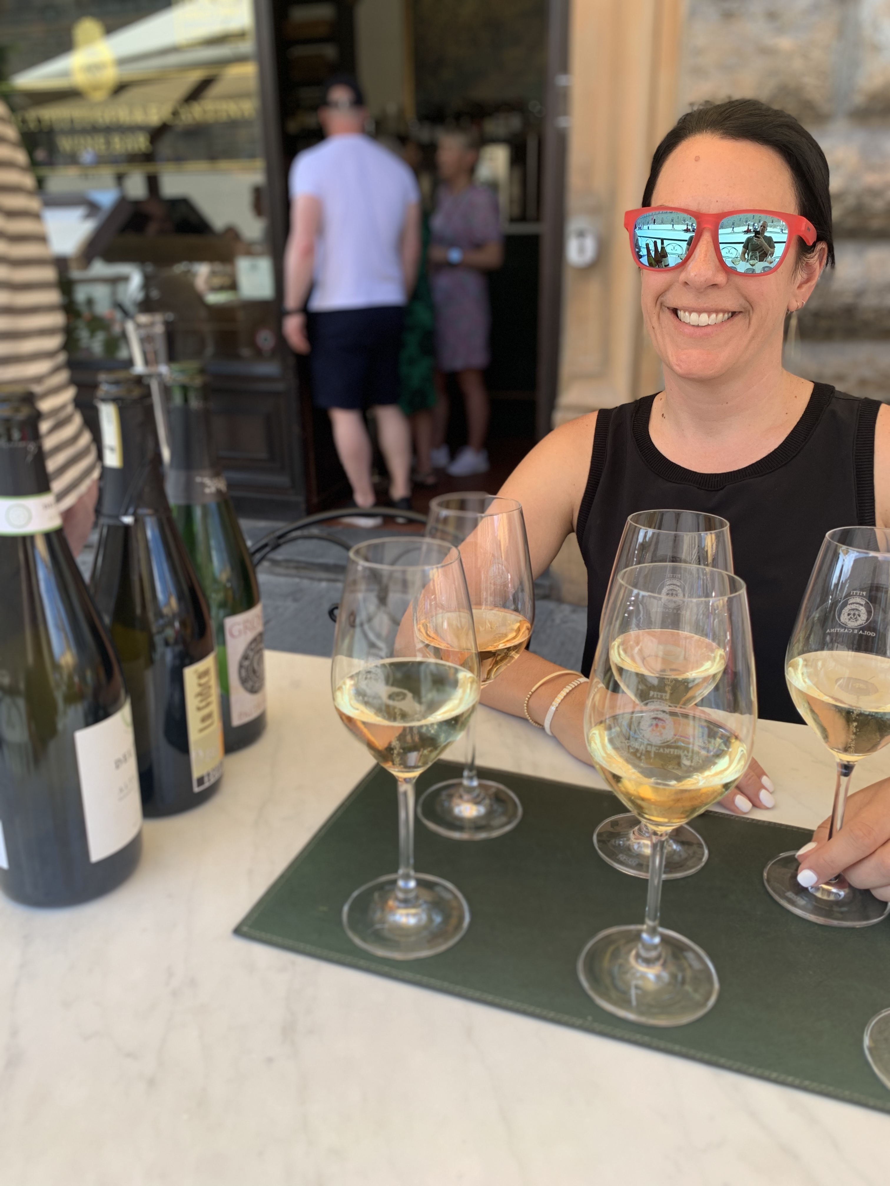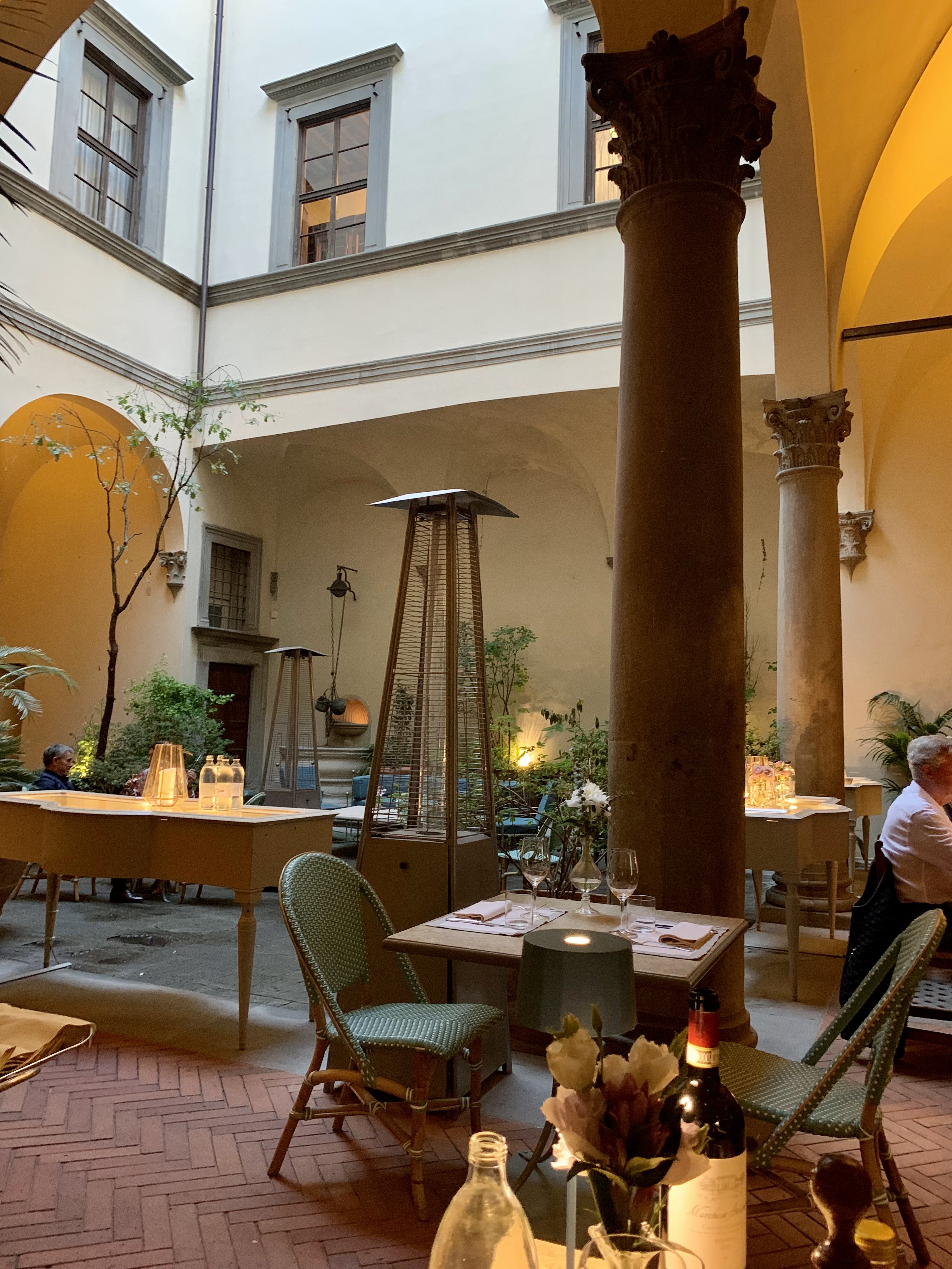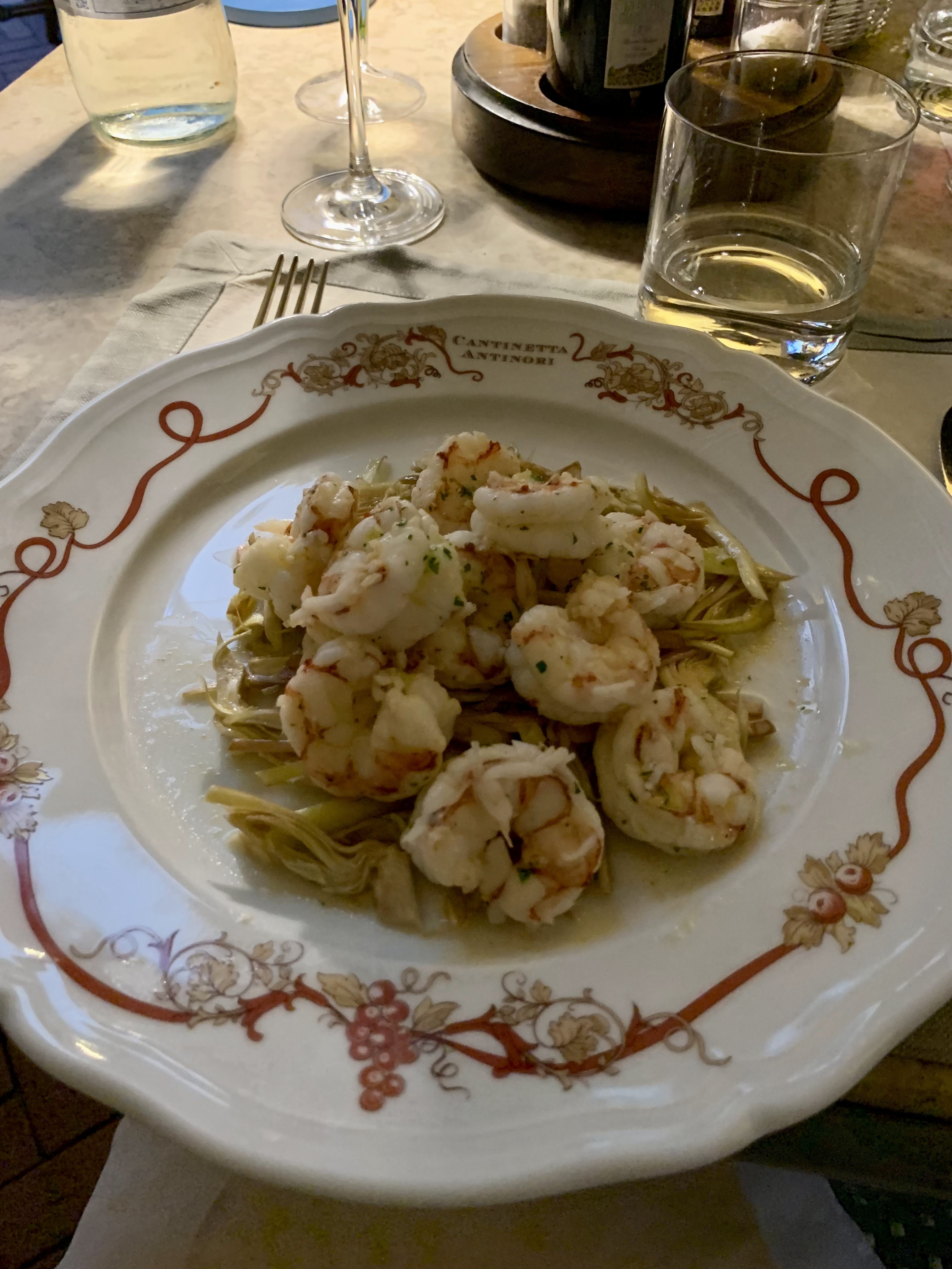We ate dinner in the courtyard of a1400s Renaissance-style mansion at Cantinetta Antinori, as in the Antinori family that produces wine. This is a great spot all around to try Tuscan dishes like shrimp and artichokes, cannellini beans, and a massive cheese platter for two. Side note: we may have seen Donatella Francesca Versace, the Italian fashion designer, hosting a cocktail gathering of sorts in the courtyard shortly after I took the photo in the bottom left.