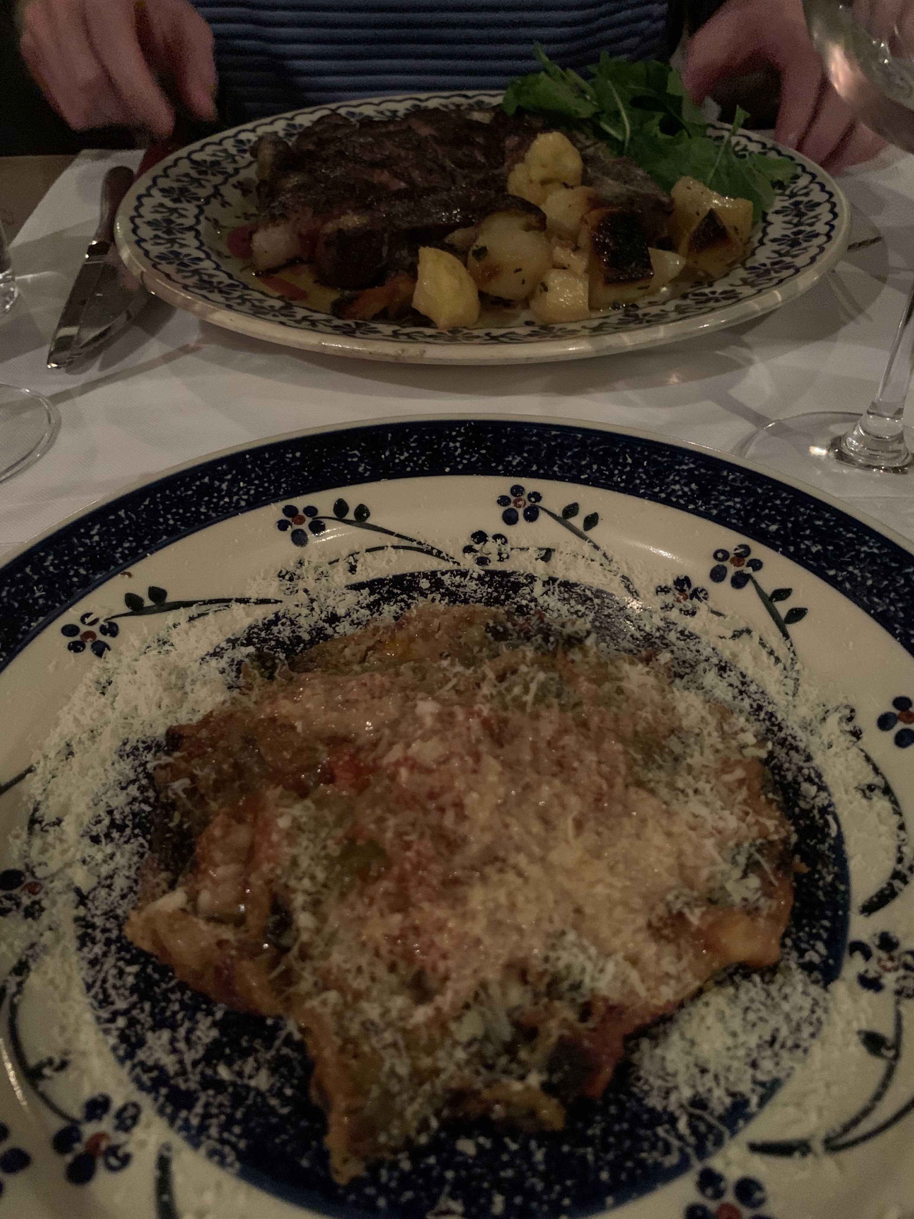 Dinner at Trattoria 13 Gobbi was an experience and was hard to capture the ambiance. We arrived at 7:30 when they opened and found a crowd of people outside who also all had 7:30 reservations. The entire restaurant filled up and the staff slowly managed to take everyone’s orders. The vibe was authentic, a bit rustic, and what I would call traditional Tuscan food. We enjoyed the white beans and tuna (not pictured), the eggplant and the personal steak and potatoes.