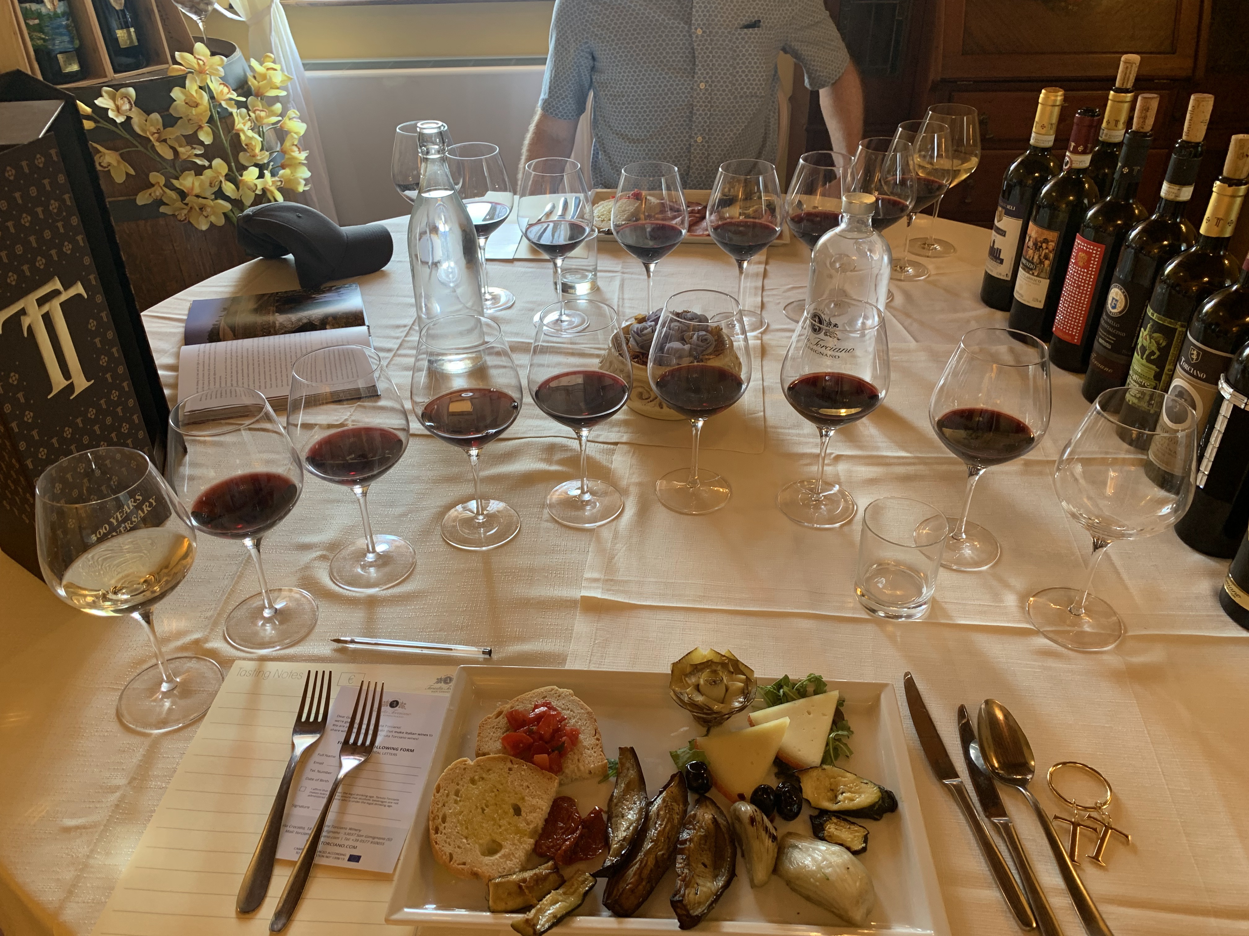 Our next stop was at Tenuta Torciano, a family owned winery near San Gimignano that the company we booked the driver through strongly suggested we visit. I had high hopes for a tour around the vineyard, a tasting, and lunch since we had similar experiences in Sonoma and Napa in California. Upon arriving, we enjoyed a glass of rosé in the garden while they finished setting up our tasting and then spent the rest of the two hour visit inside a private room. The food and wine were great, however, I thought we were going to be seated outside in the vineyard. By the time the meal was over it was time to head back to Florence so we didn’t get a chance to explore the property beyond these photos. A reason to return!
