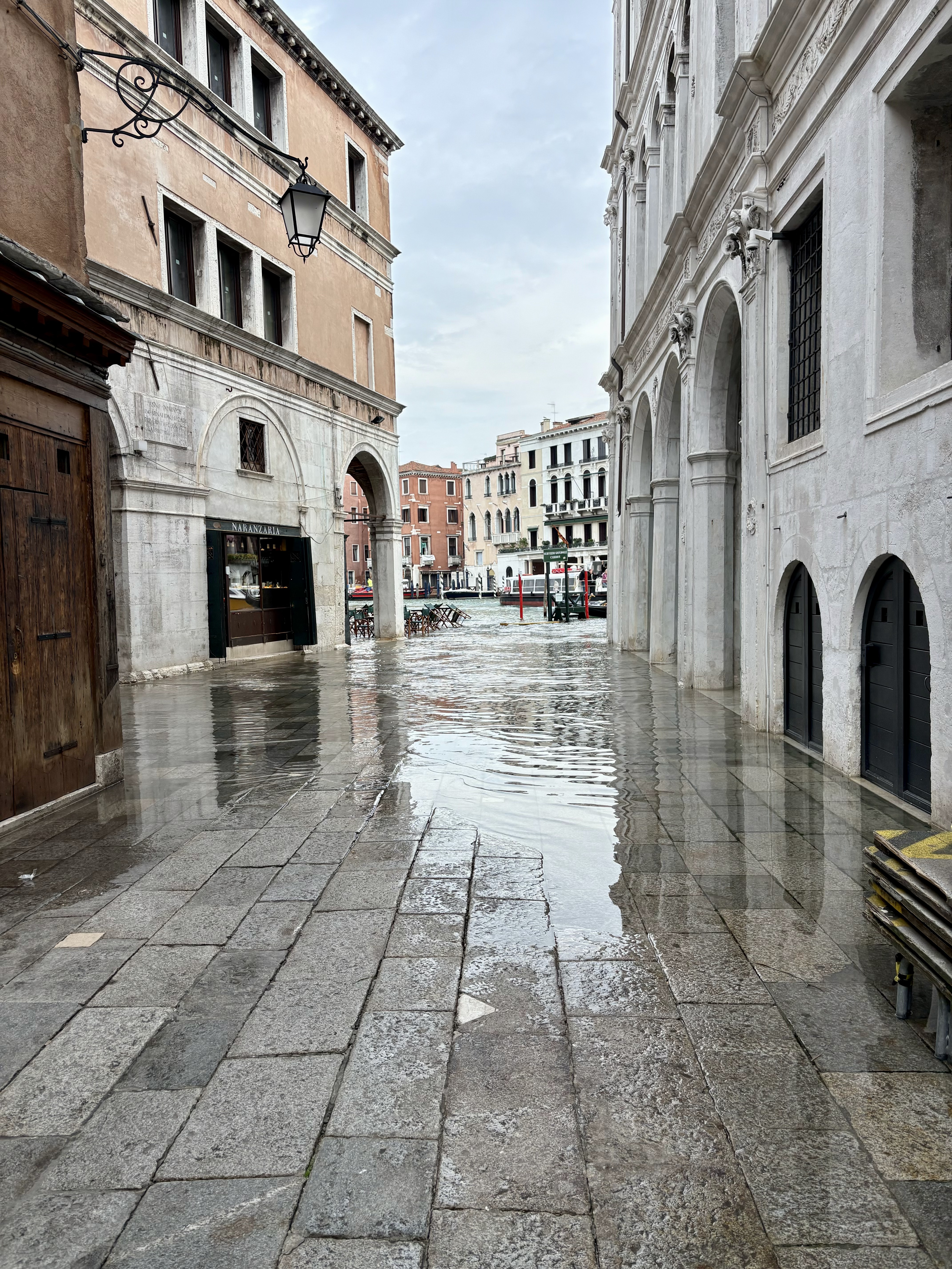 The Rialto bridge is one of the main tourist attractions. It is the best spot to watch the boat traffic on the Grand Canal. It was unfortunate to see flooding due to the high water level this time of year.