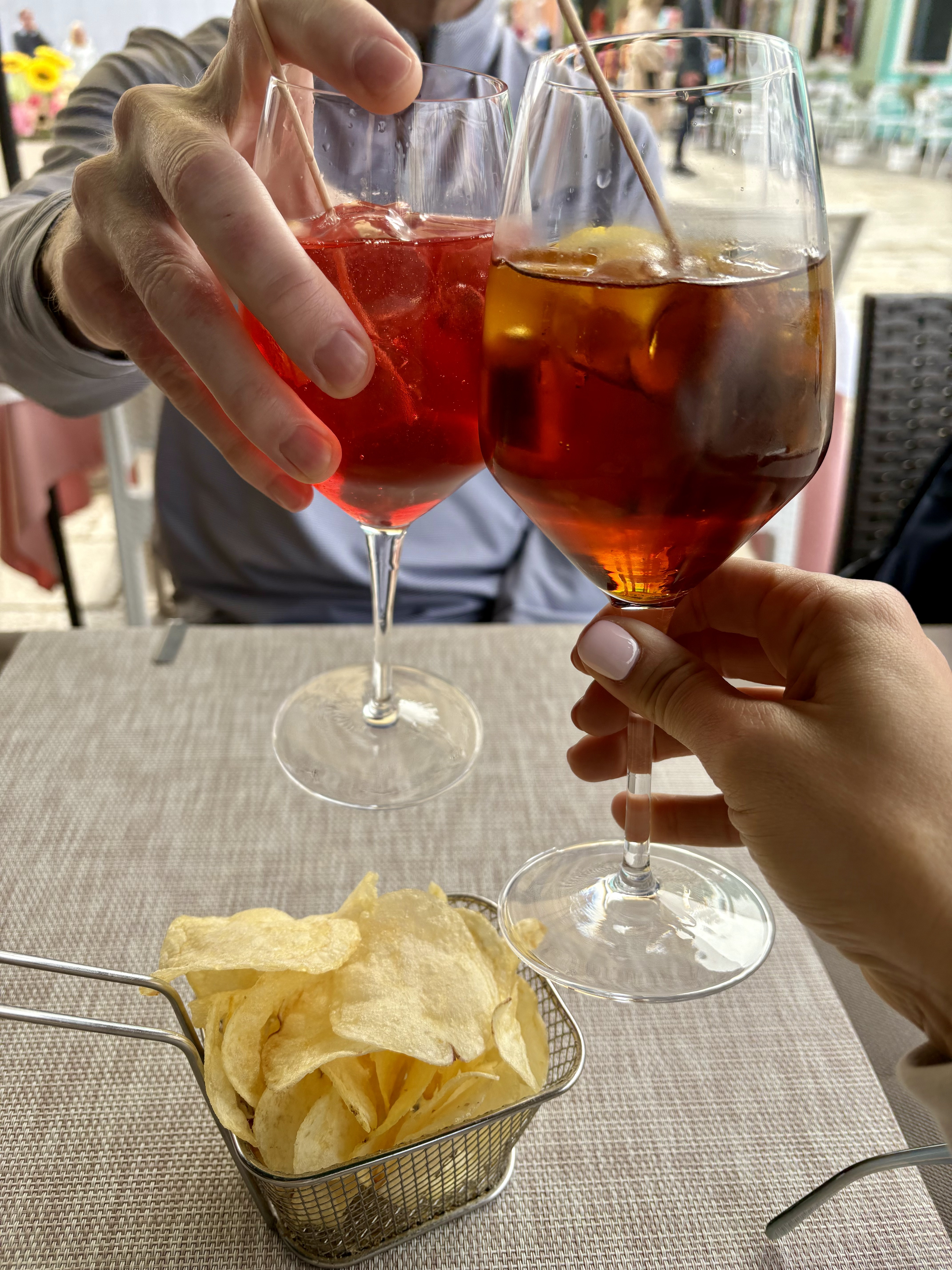 Technically speaking, we ate at Trattoria Caffe’ Vecio since potato chips were involved. If you visit the island of Burano, it is a great place for a spritz. You can enjoy people watching while you wait for your boat to leave.