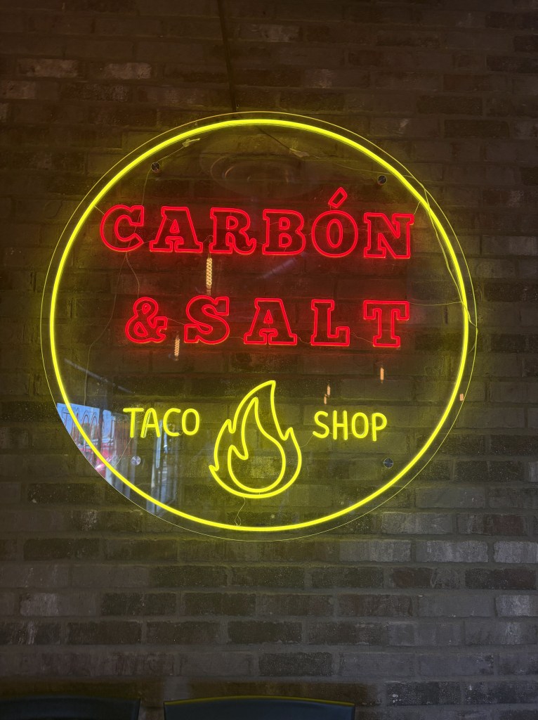 We took an early flight from Washington, D.C. to Phoenix, arriving before 11am. After getting a rental car, we drove two hours to Sedona. My task as the passenger was to find lunch tacos, and we stopped at Carbon & Salt about 30 minutes into the drive.