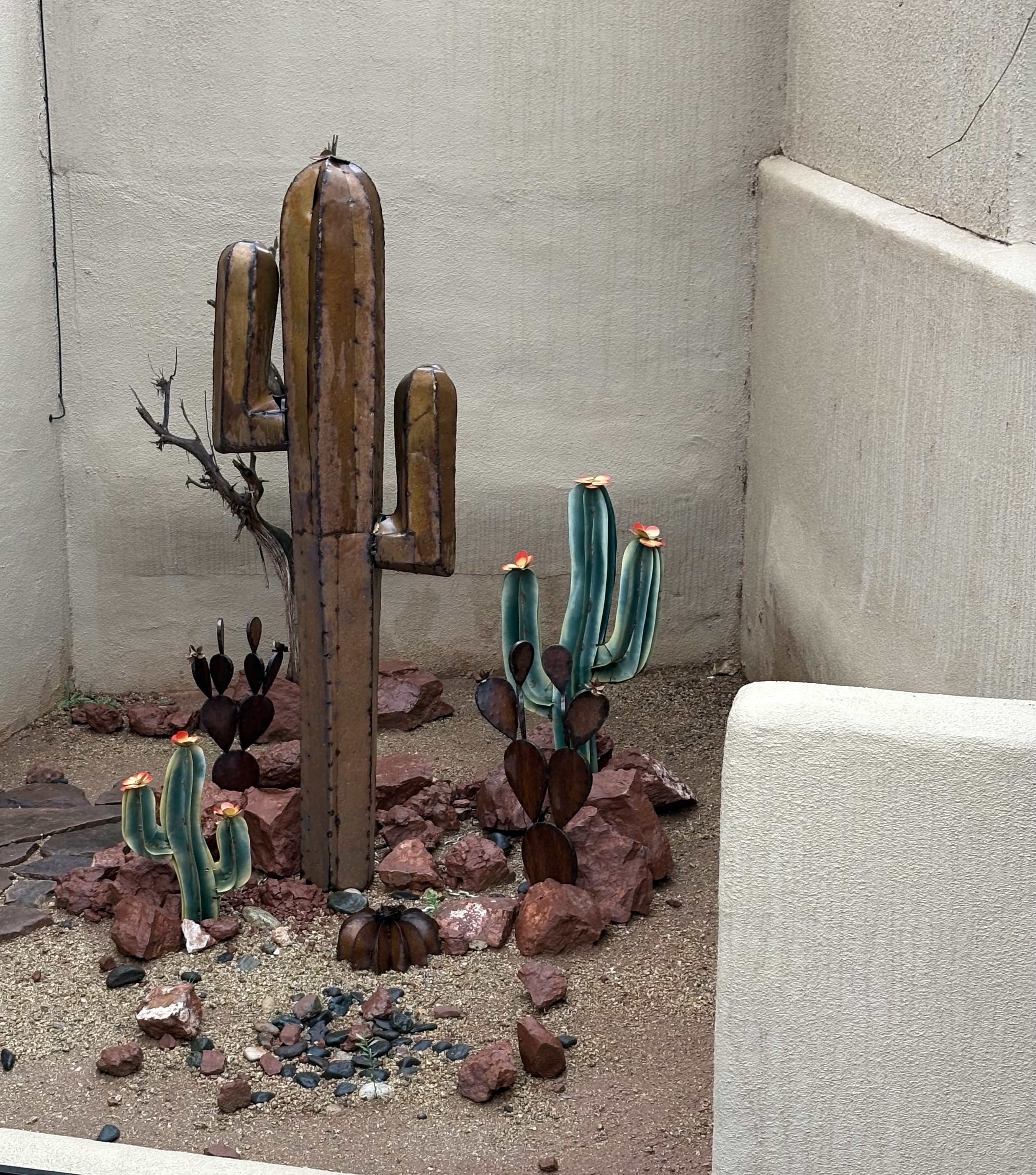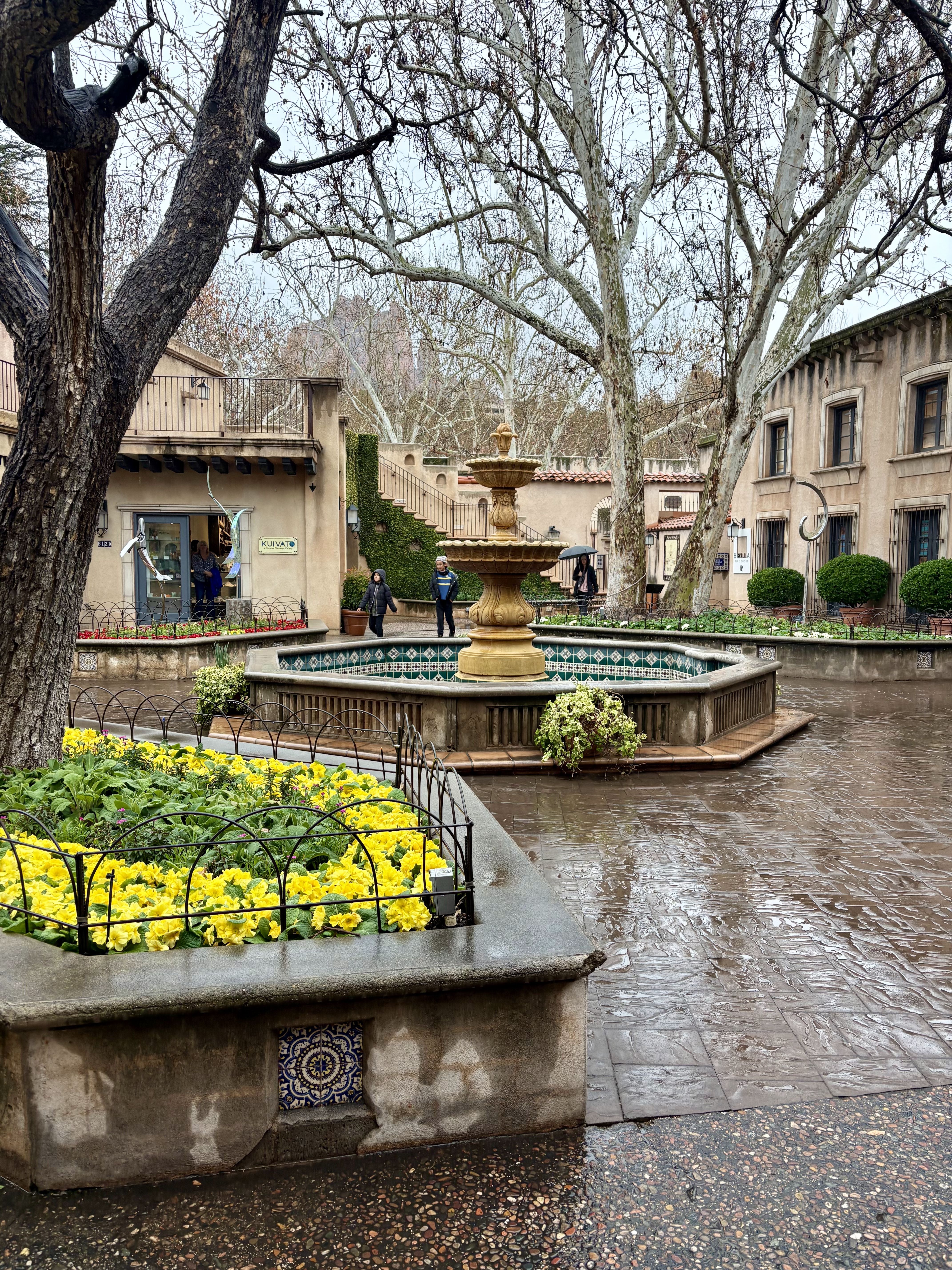 Rain in Arizona is unusual, but it often rains in Sedona. Despite the weather not being ideal for hiking one day, we explored local art exhibits and shops. We had lunch at Golden Goose and visited the Sedona Artist Market and Fine Art Museum of Sedona nearby. Next, we went to Tlaquepaque Arts & Shopping Village, which was tricky to navigate with an umbrella and many tourists. Since we were in the area, we stopped at the Hillside shops. They are worth visiting on a rainy day, but next time I would prefer hiking or relaxing at Enchantment and Mii Amo.