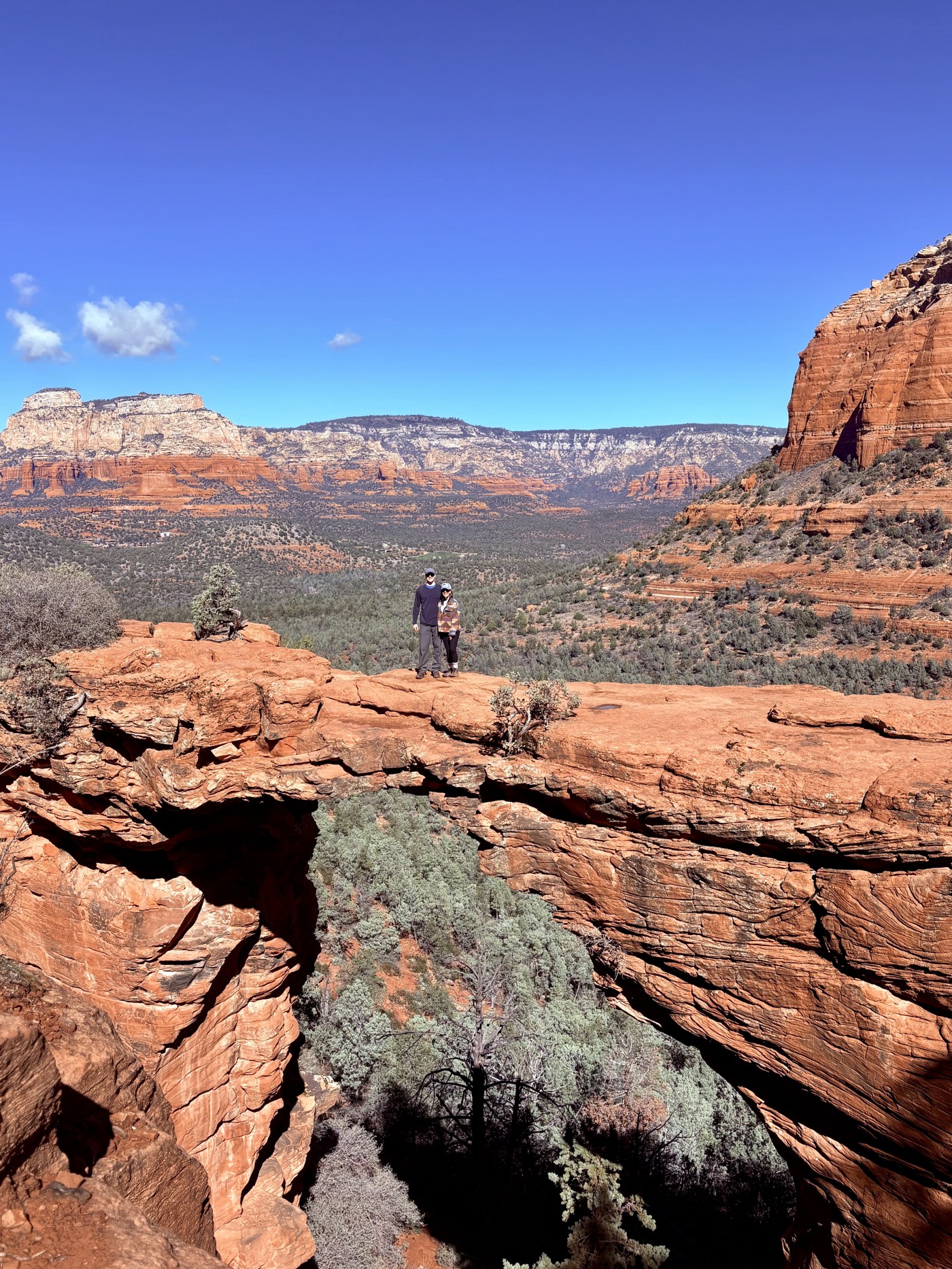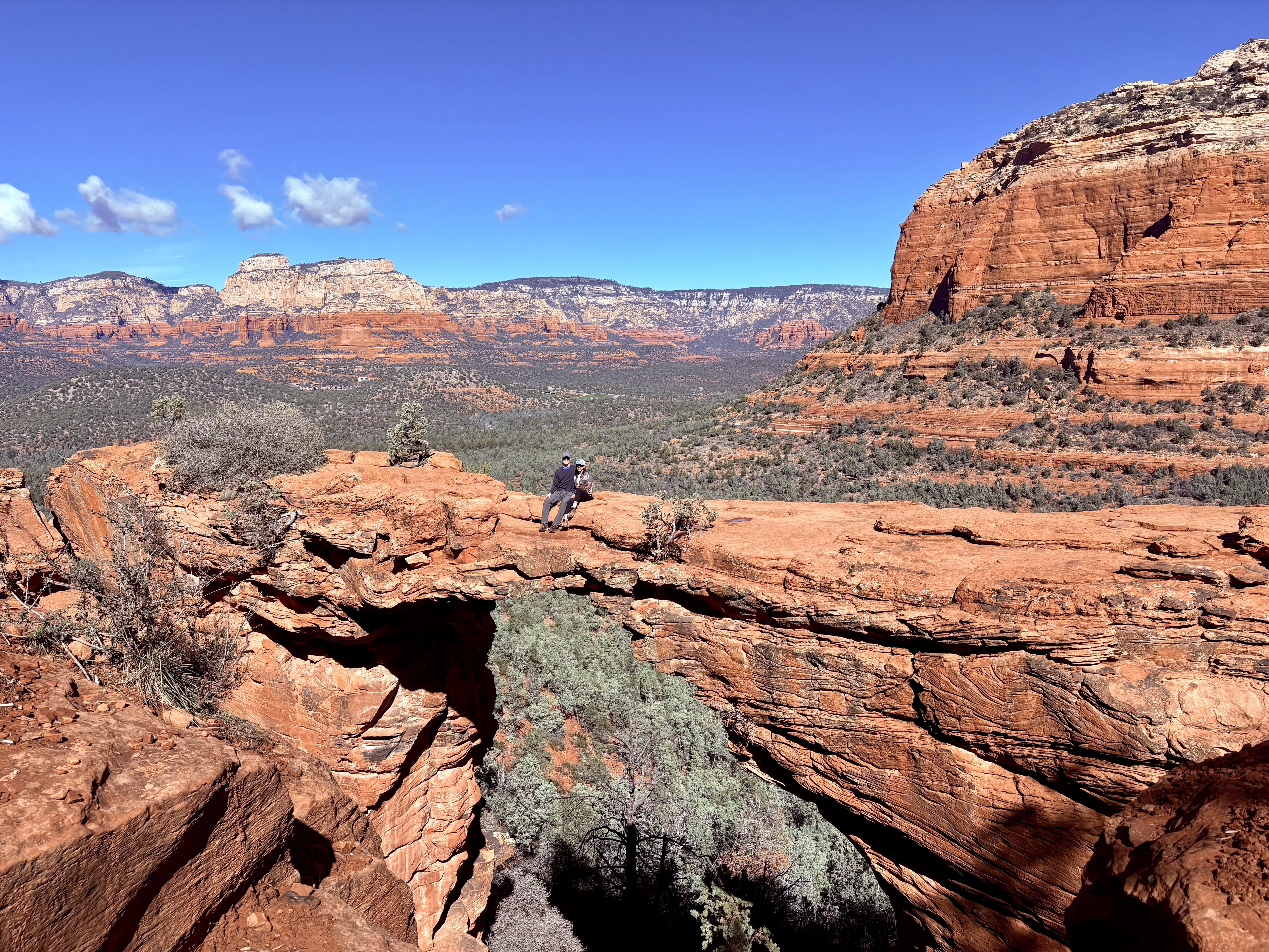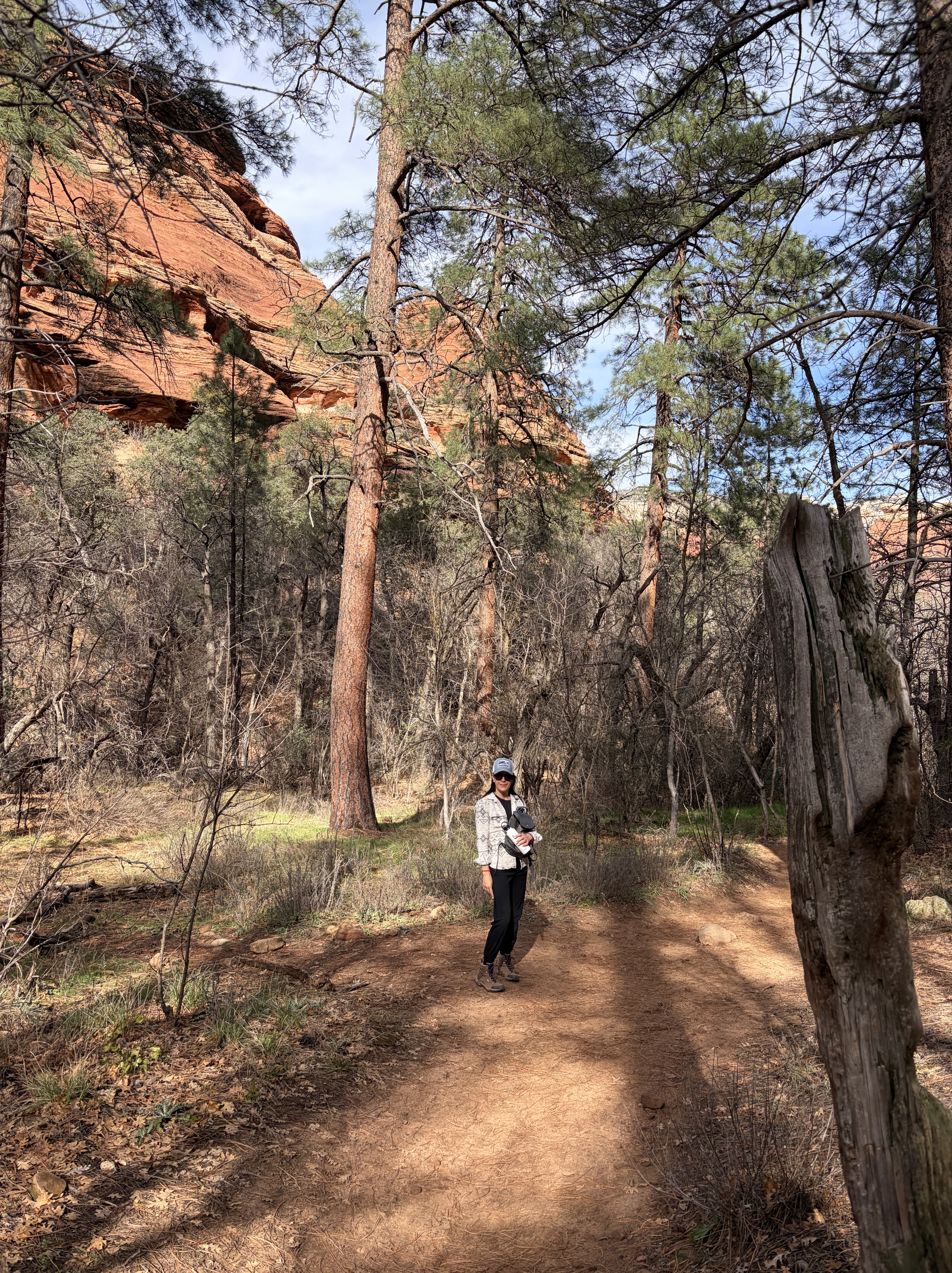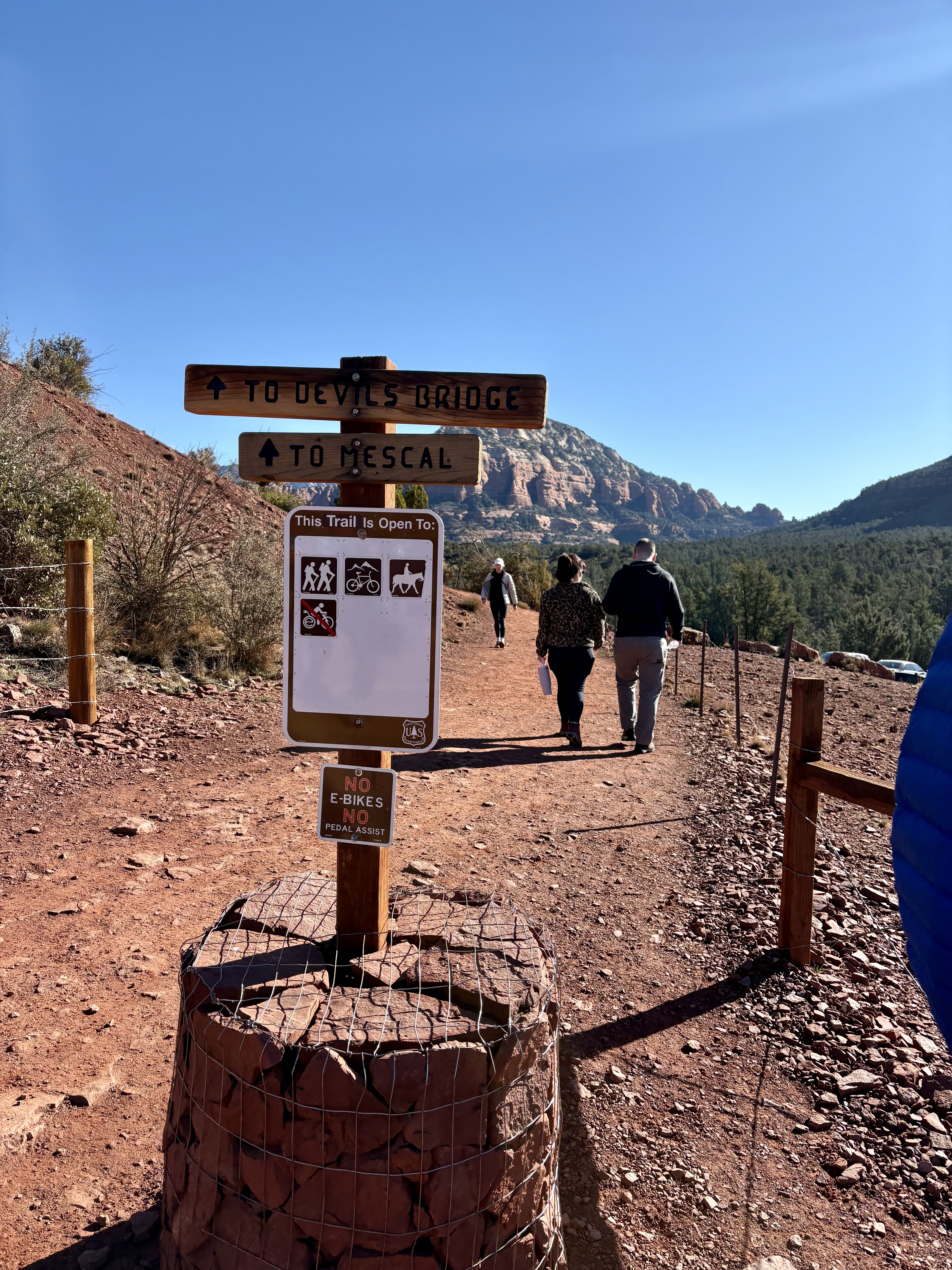 We decided to hike Devil’s Bridge, a 4.6-mile round trip that features a large sandstone arch perfect for photos. There are several routes to reach it. We began at the Mescal trail, passing through the Coconino National Forest.