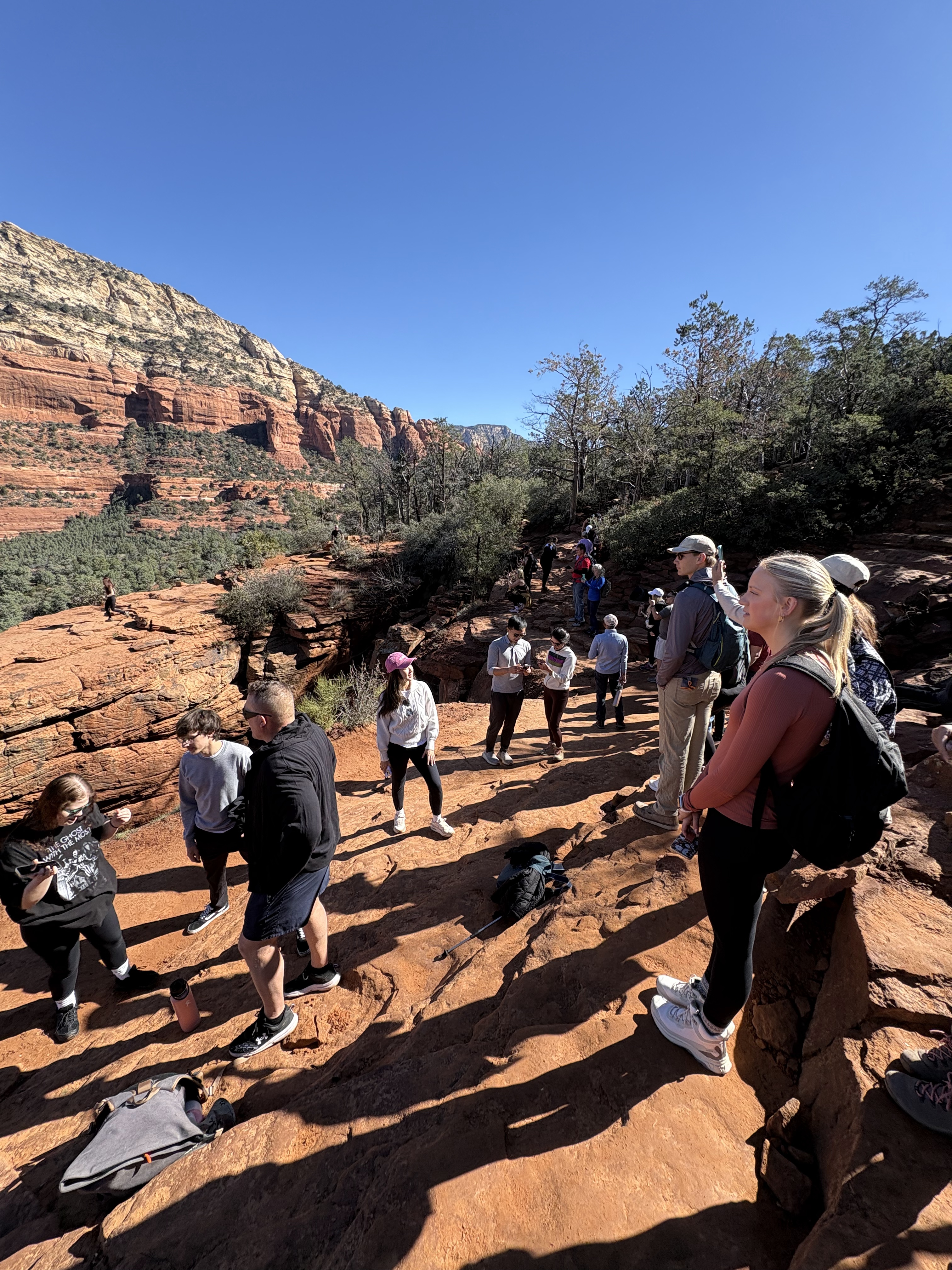 The hike was mostly flat with some tough rock climbs through narrow paths. We reached the top in under an hour and then lined up for almost an hour to get a photo on the arch.