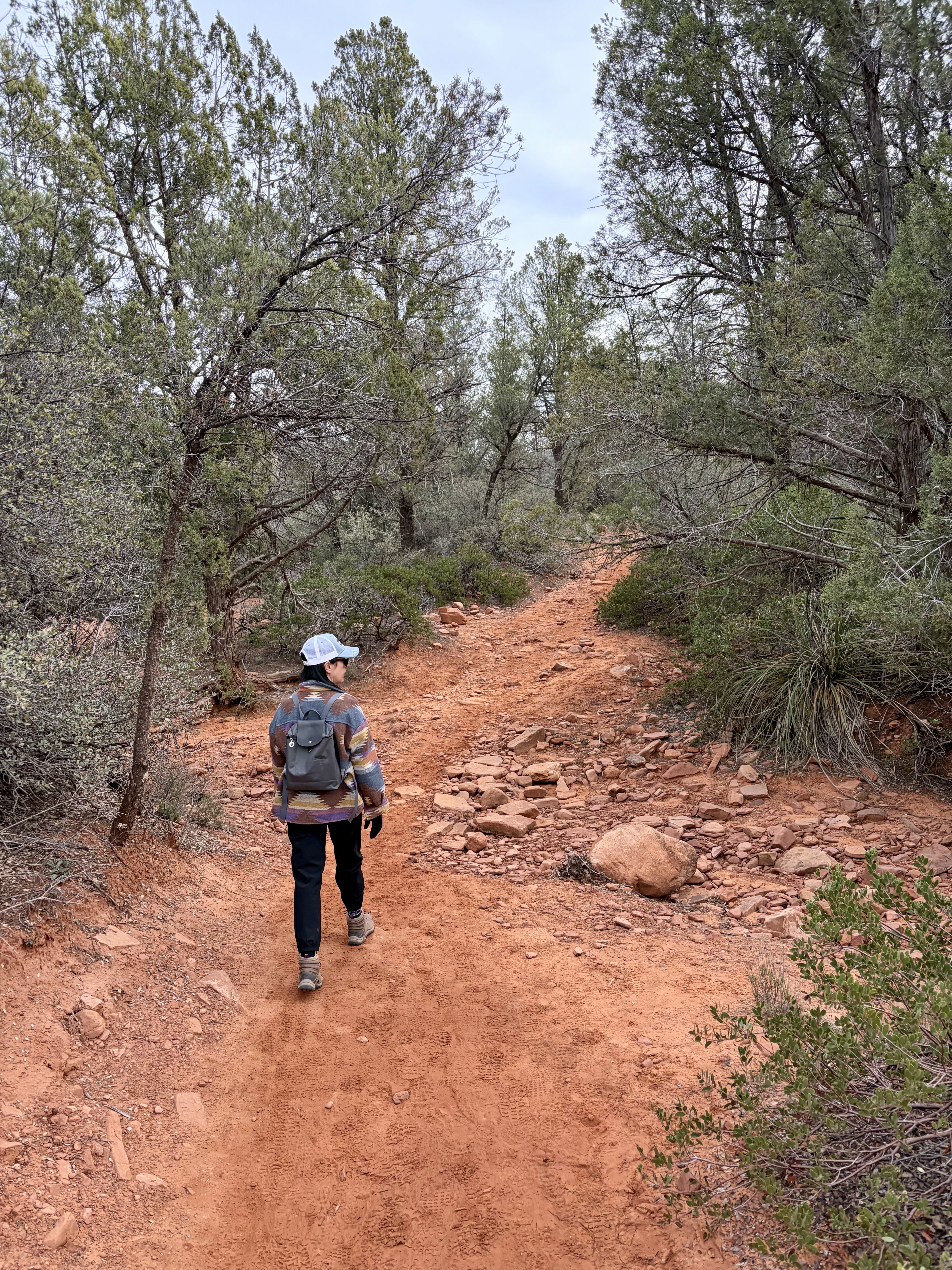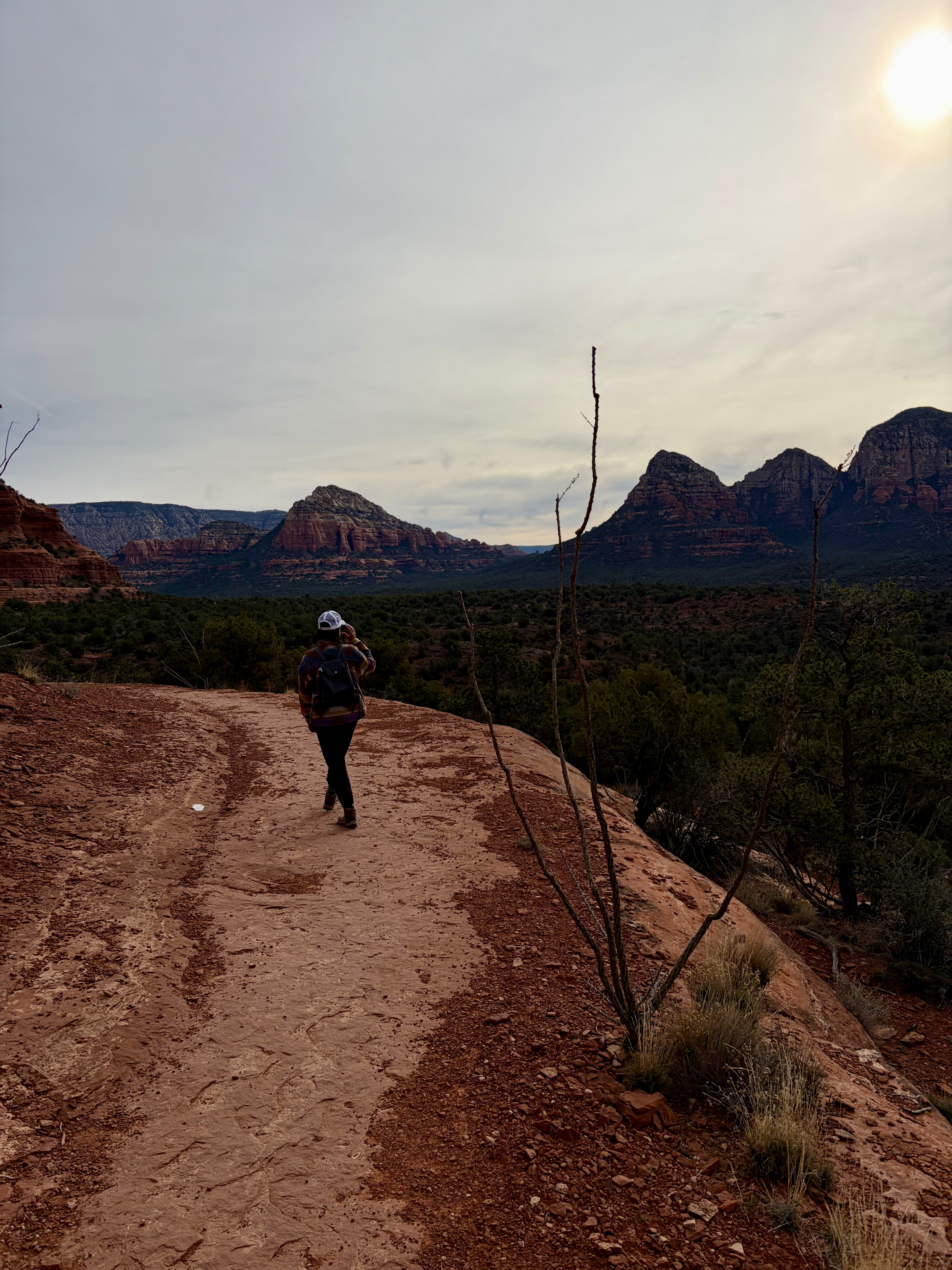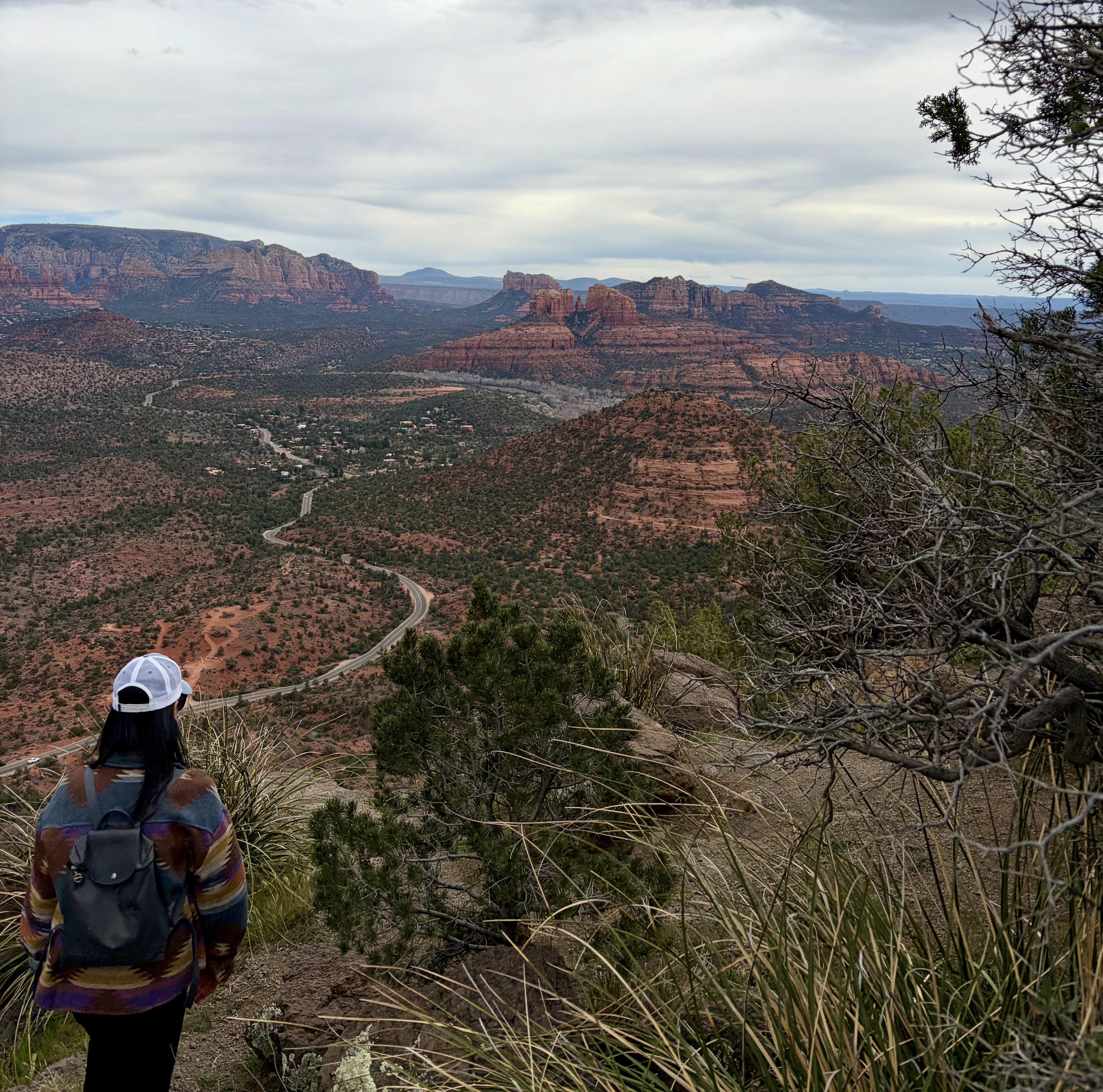 We headed to the Schuerman Mountain Trailhead, as recommended by Enchantment’s Trail House. The trail begins near a high school and quickly climbs, providing beautiful views of Cathedral Rock and Sedona. Although it was windy and overcast, the scenery was amazing. What a great way to conclude our five days in Sedona.