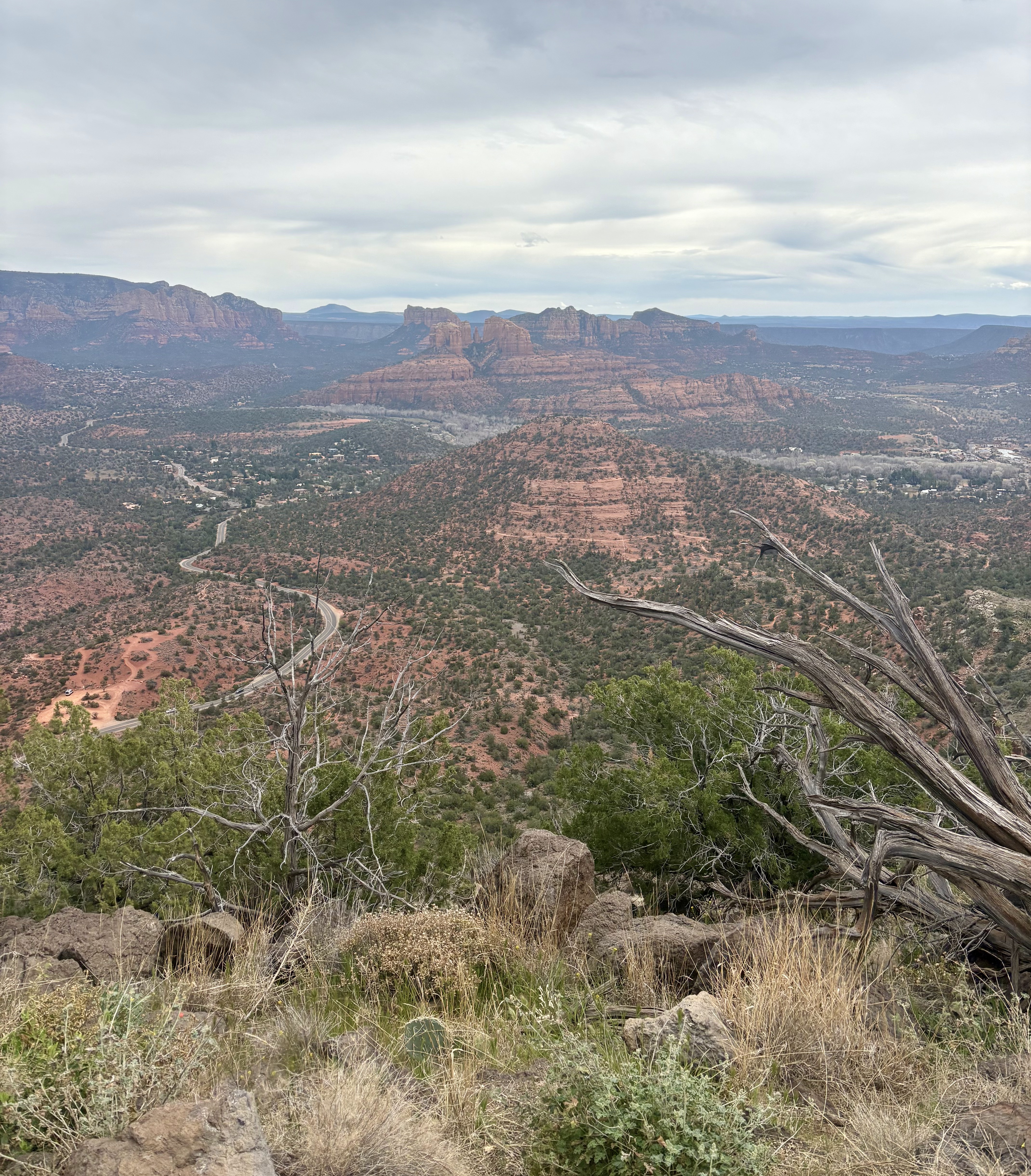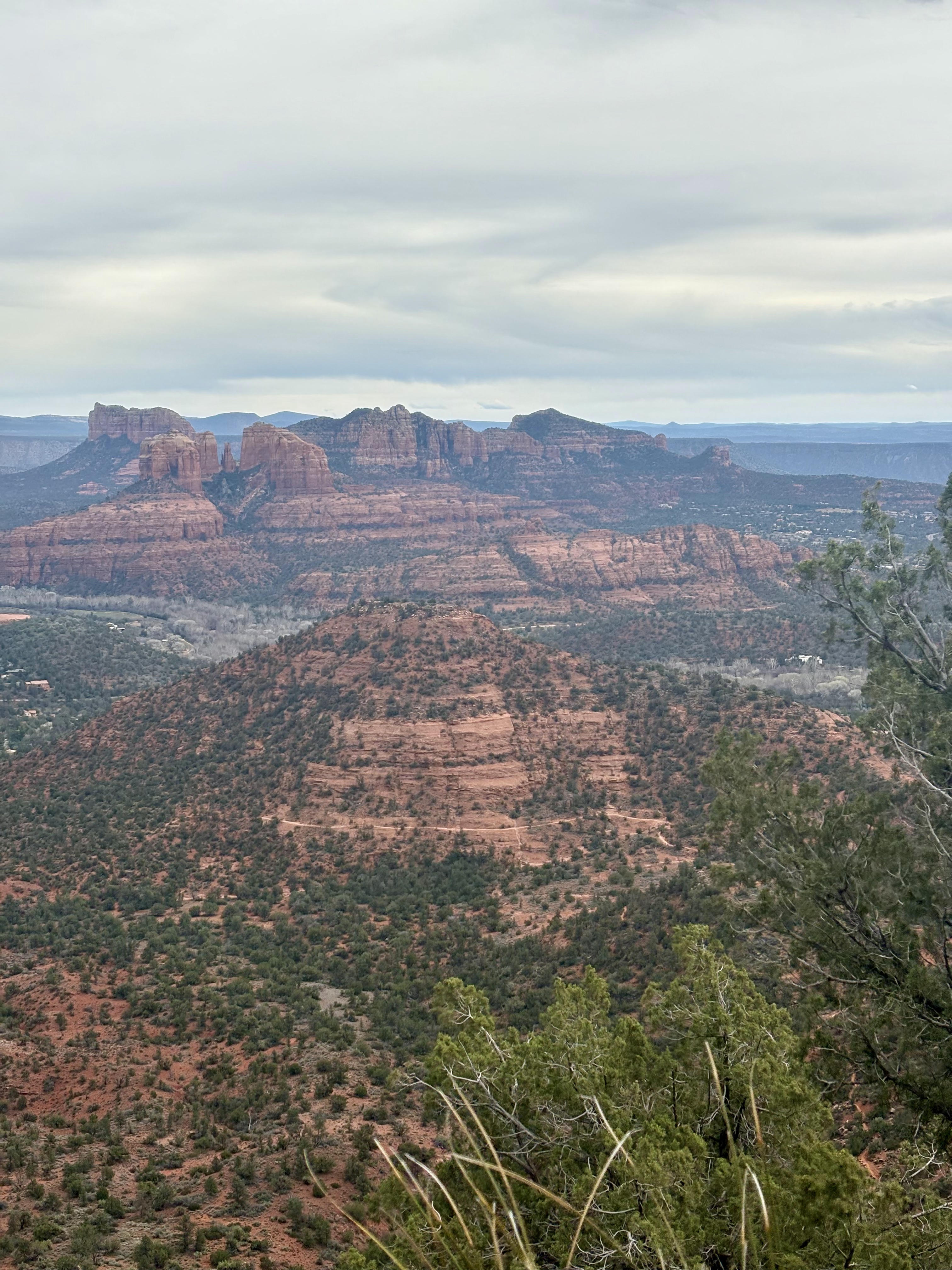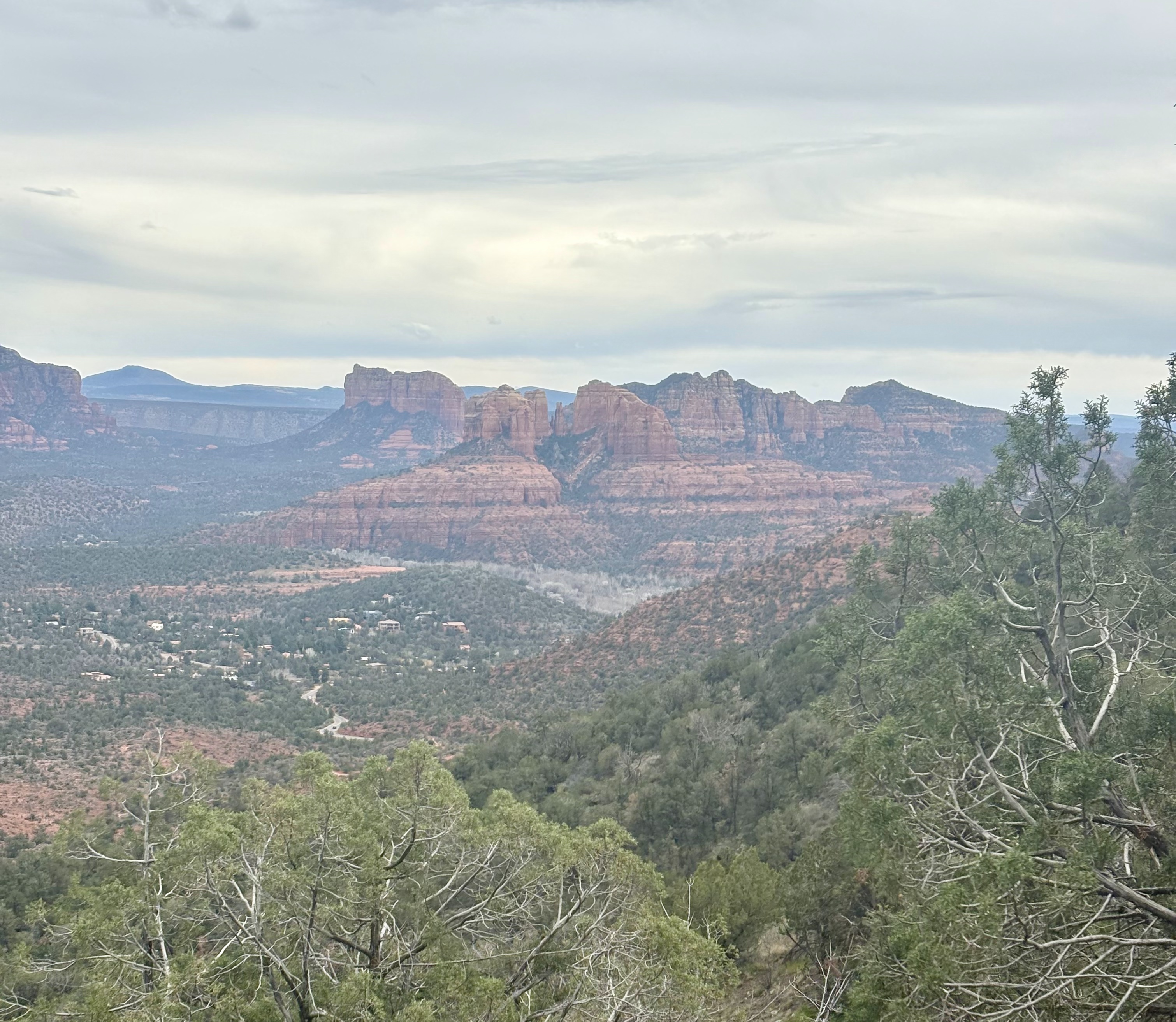We headed to the Schuerman Mountain Trailhead, as recommended by Enchantment’s Trail House. The trail begins near a high school and quickly climbs, providing beautiful views of Cathedral Rock and Sedona. Although it was windy and overcast, the scenery was amazing. What a great way to conclude our five days in Sedona.