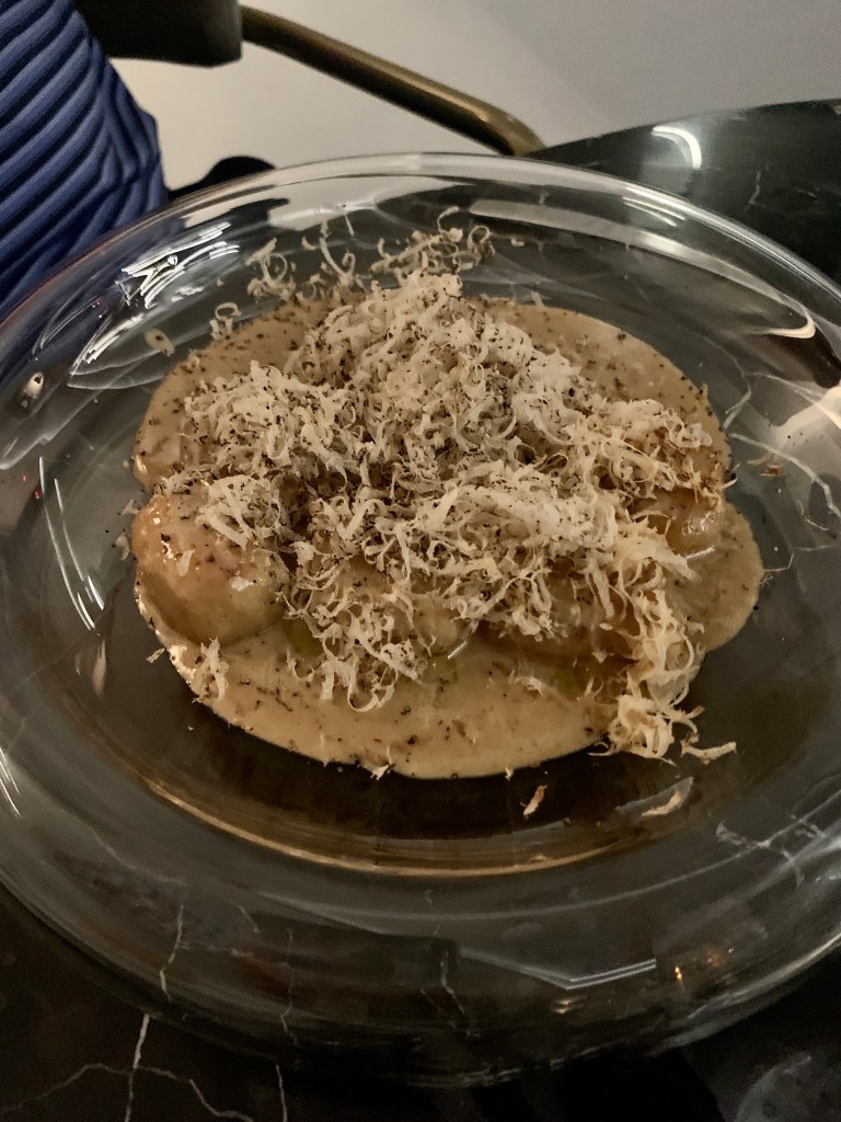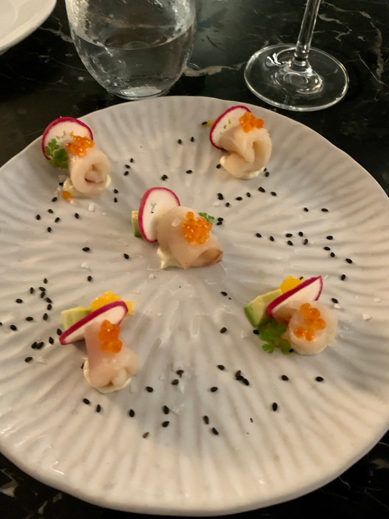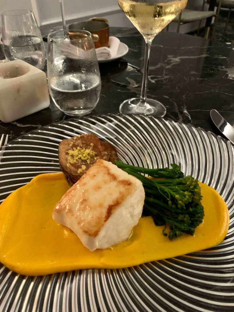 We made a reservation at the Fairmont’s only fine dining restaurant Riva for dinner the night of our anniversary. Riva offers a five-course testing menu that starts off with three rounds of canapés – the truffle arancini and the potato stack with mushroom powder were my two favorites from that course. The second course featured hamachi crudo, followed by seafood risotto and truffle gnocchi. The halibut was one of the stars in the fourth course followed by a creative panna cotta to round out the meal. It was the best meal that we ate at the Fairmont but it does not compare to our experience at the Inn at Little Washington two years ago. That was epic.